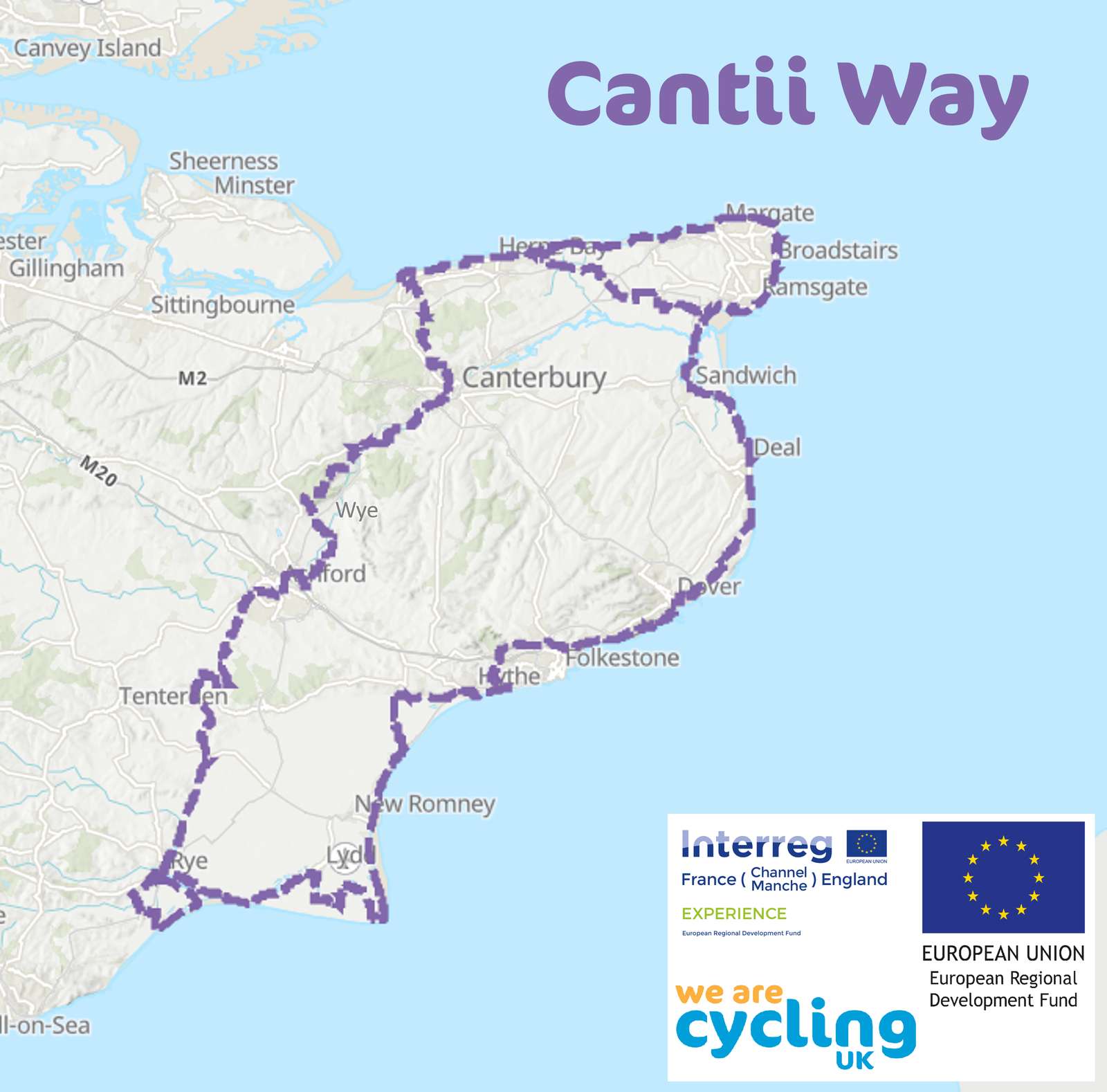 The Cantii Way is a 145-mile (234 km) route beginning and ending in the village of Wye, close to Ashford in Kent. It is designed to be a perfect introduction to multi-day cycling and can be ridden in one go over three to four days as it passes through Canterbury, Whitstable, Folkestone, Dover and Dungeness. With regular train stations along its length it can also easily be split up over several weekends.