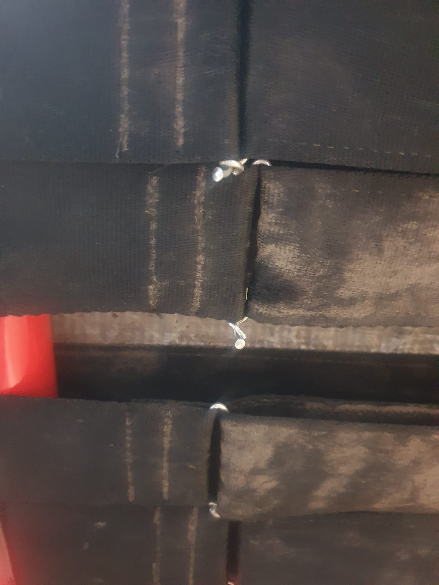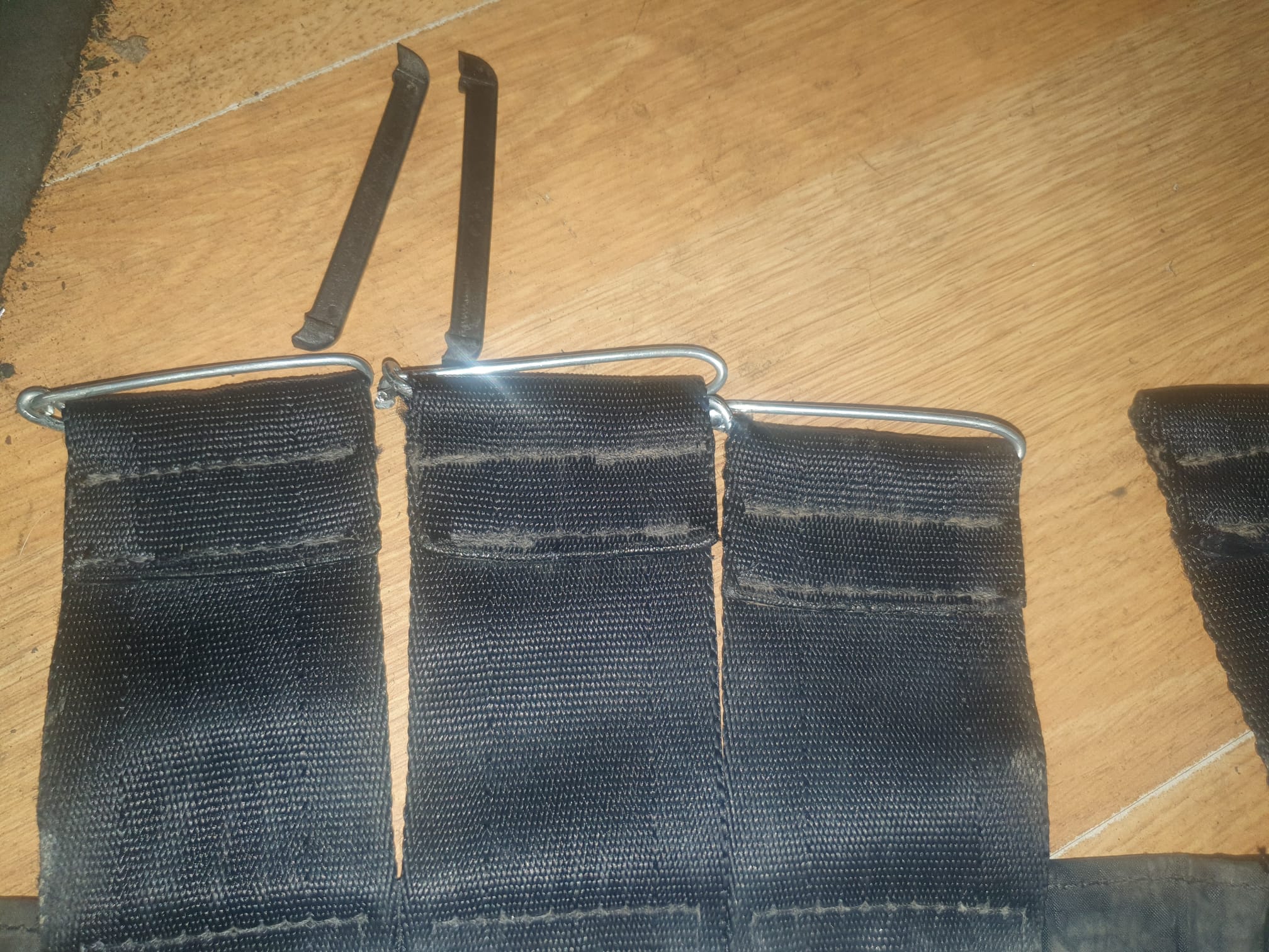 The seat is made up of a removable cushion that sits on top of a sheet of nylon. This sheet is secured with strips of what looks like velcro backed, car seat belt wrapped through little plastic buckles, most of which had given way when the old frame broke. This was a nightmare! The bike was part way built and Neil was supposed to be riding it at the weekend and we had no way of securing a seat. After a good few minutes of assorted swears and curses at the impossibility of getting new buckles in time for the weekend my MacGyver brain kicked in as I scoured the workshop for a solution.