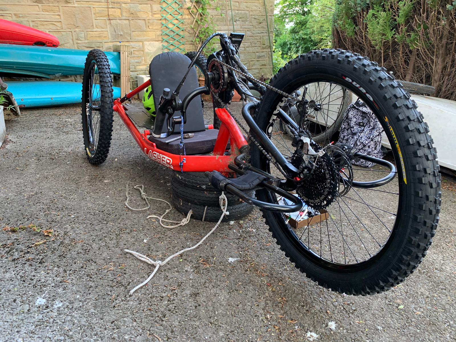 It’s a happy ending for Neil’s red handcycle as well. Rather than being relegated to the back of the shed behind the full sus, gathering dust and not being used, Neil sold the bike to a lad called Will who has made some pretty awesome changes to it!