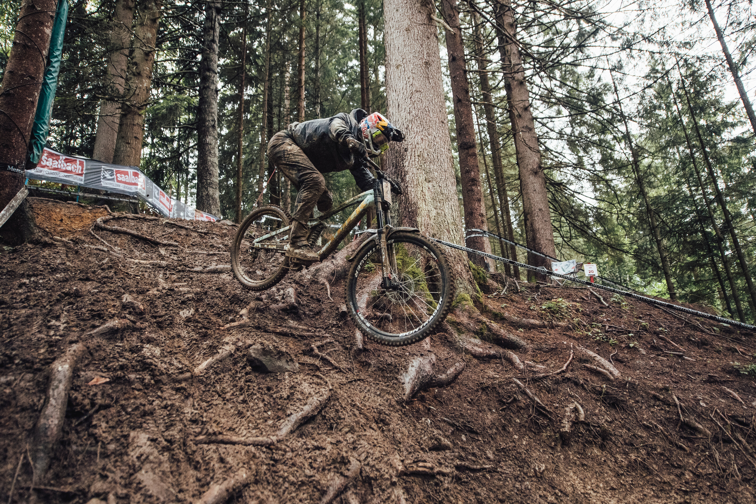 Trying to become the first man in history to win the opening three rounds of the World Cup season, Amaury Pierron was next in the gate. Pierron went fastest but he looked tight and never quite found his groove and he wasn’t in the hotseat for long as Angel Suarez Alonso went quicker by 0.2. The Spaniard was the first rider to throw caution to the wind as they entered the woods, there would be more of that to come. Local boy Andreas Kolb returning from a broken elbow had a run to remember and slotted in between Pierron and Vergier, and Aaron Gwin looked to be getting some form back with a run that would end up eleventh.