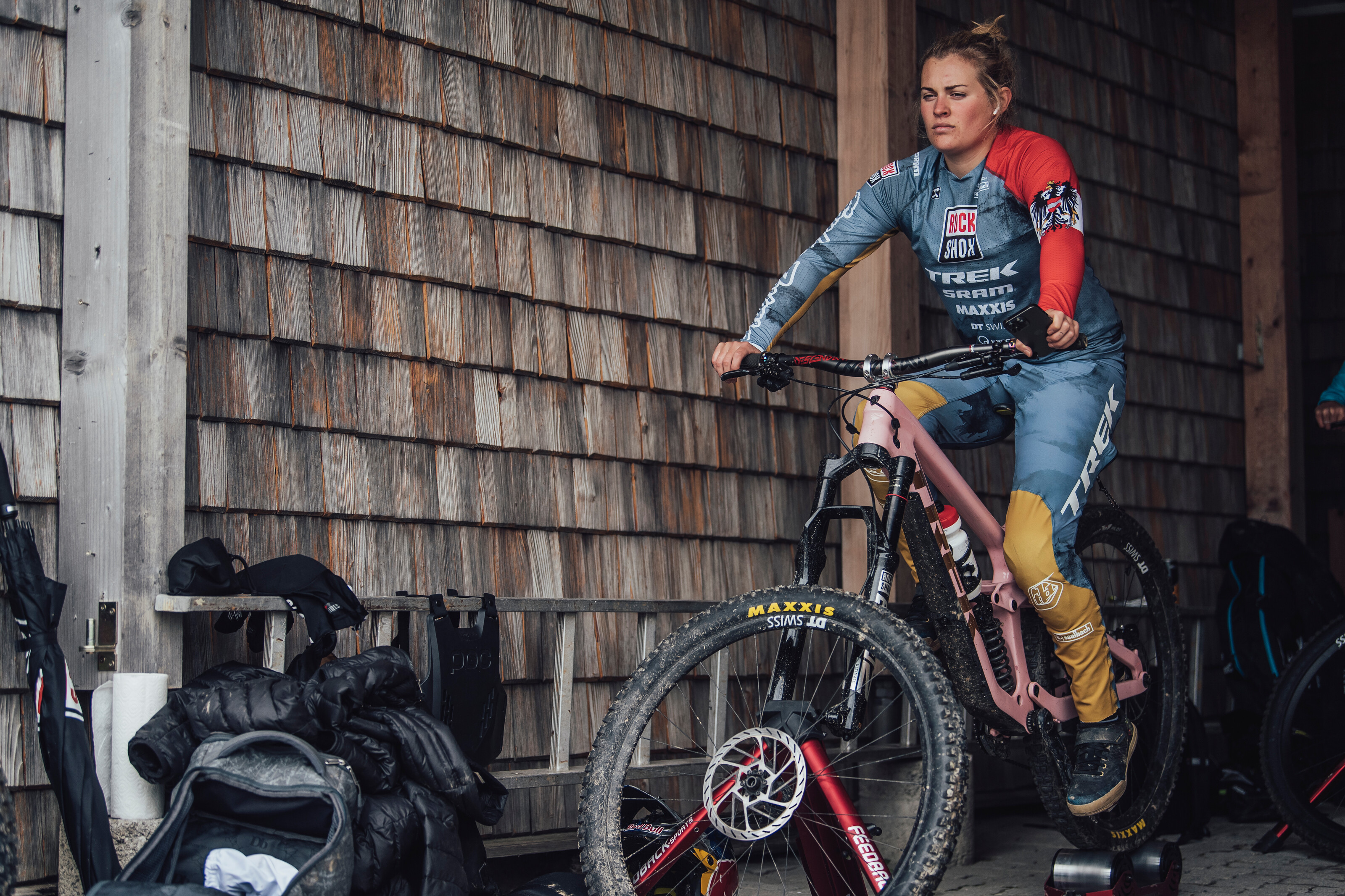 It was only when Eleonora Farina came down that Ferguson had to relinquish the hotseat, with the Italian going five seconds quicker and in doing so beating Balanche’s fastest qualifier. That time didn’t hold for long though with World Champion Myriam Nicole going four seconds quicker still despite being four seconds back at the first split after a small crash. The Frenchwoman was on different lines to the previous riders and was the first rider to actually look comfortable in the woods. Marine Cabirou broke her back in the winter and unfortunately suffered the same injury in her race run going full scorpion in the stumps section leaving just the 2 fastest qualifiers at the top.