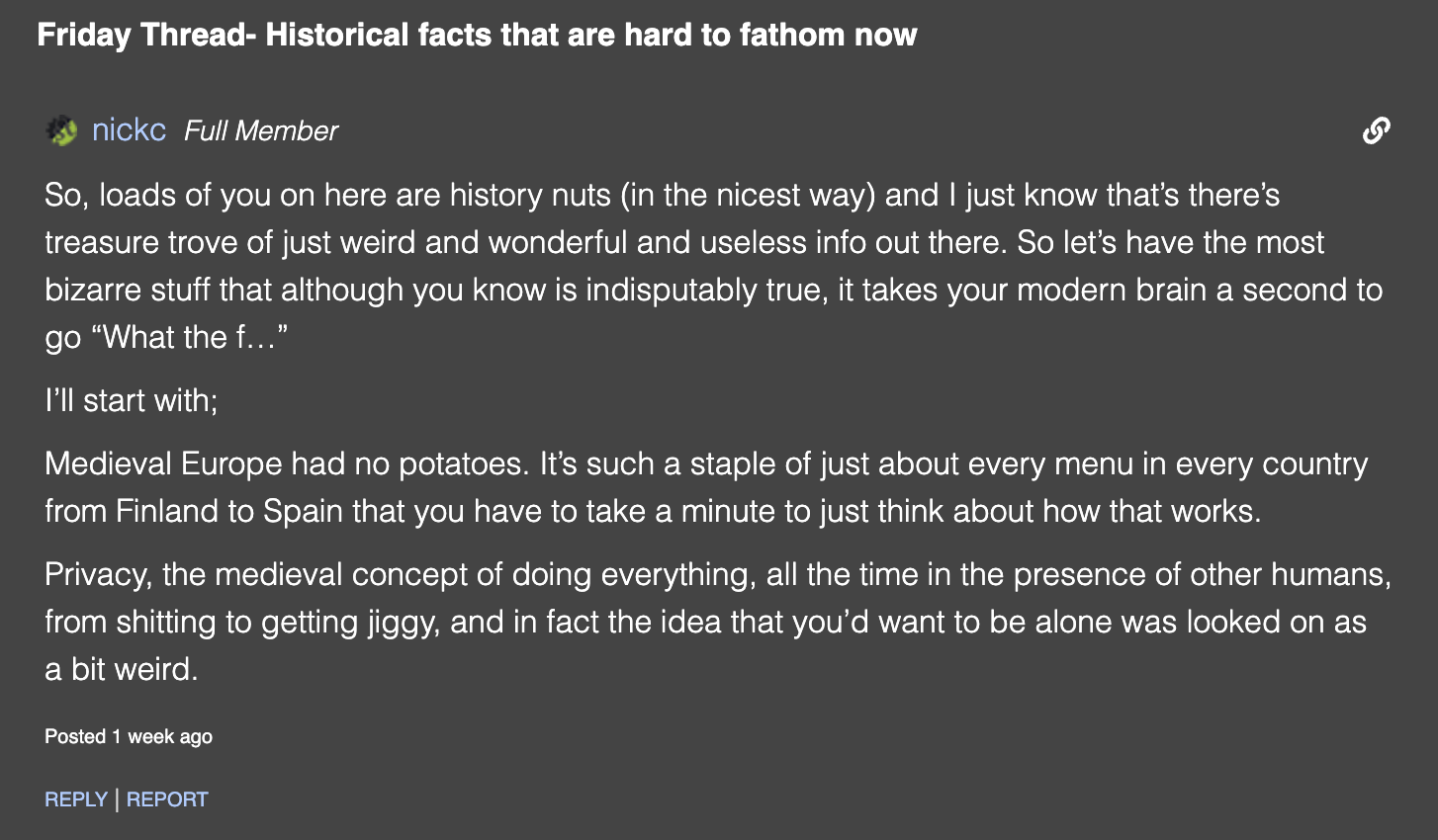 Congratulations to nickc for this week’s winning forum post. This history-tastic follows on nicely from last week’s geography-tastic FGF. Next week’s topic: P.E.