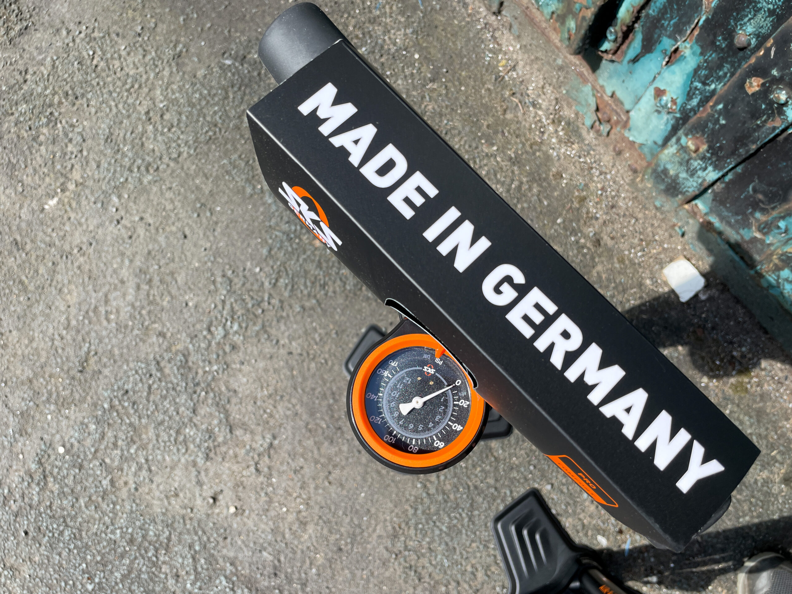 The SKS Airmotion 12.0 has a pressure gauge at the top. The SKS Air-X-Plorer Digi 10.0 has a low-mounted digital pressure gauge that measures to two decimal points. Both pumps are equipped with the improved “MV Easy” Multi Valve head.