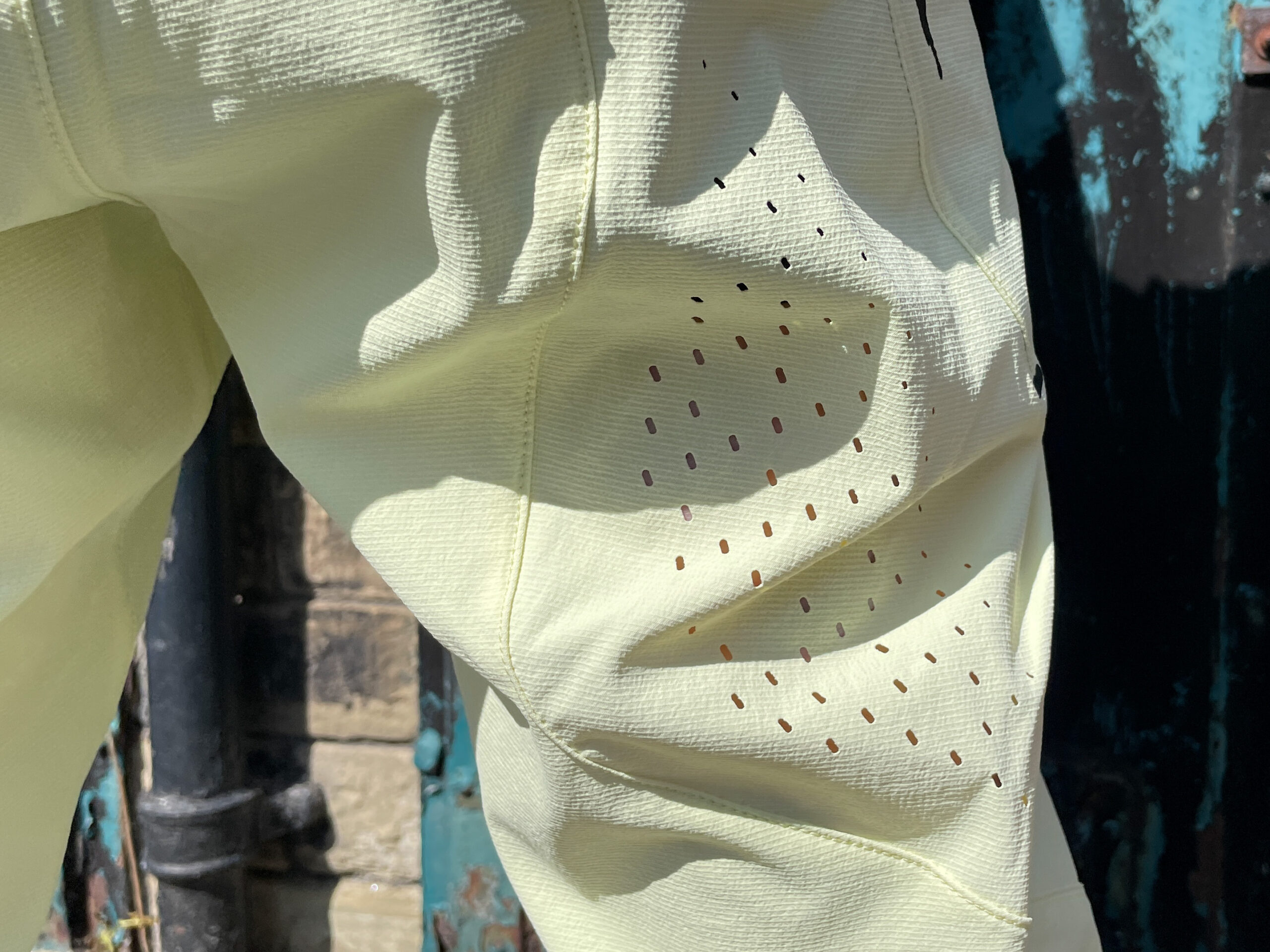 In terms of fit, you’ll find that these pants are baggy for the most part (pad friendly etc) but very “form-fitting” at the calf and ankle end. Three zippered pockets. Laser-perforated venting. Buckle waist adjustments.