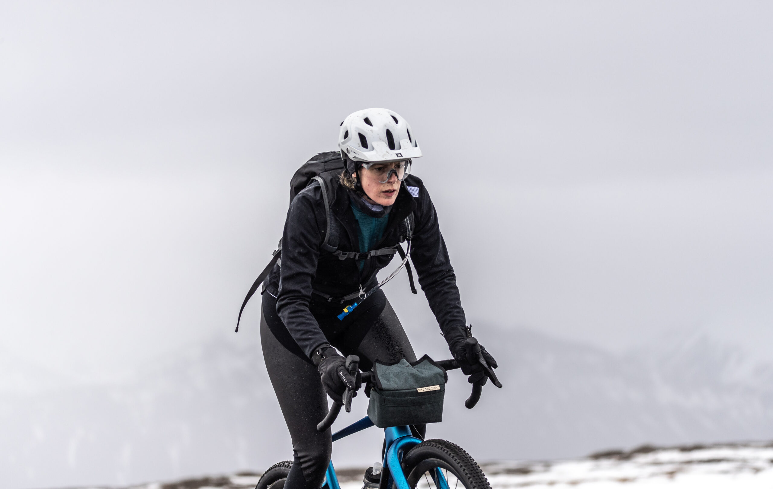 I wish for something, anything, to punctuate the endless pedalling, and am briefly rewarded with a snow-filled track, into which I ride with such delight that I have switched on the wrong parts of my brain and promptly slide out, crashing to the ground. The brief excitement and the slight warmth of a bruised knee lift my mental state for a time, the novelty of the change of state from upright to lying down, of something different happening, keeps me going. Usually I ride to laugh. To see friends, to chat, to whoop down a descent or shriek at some mild peril. I ride gravel bikes to add spice to duller trails, to go further faster and see more scenery. Here, the landscape has stripped all of that away, leaving only my legs and my internal monologue.