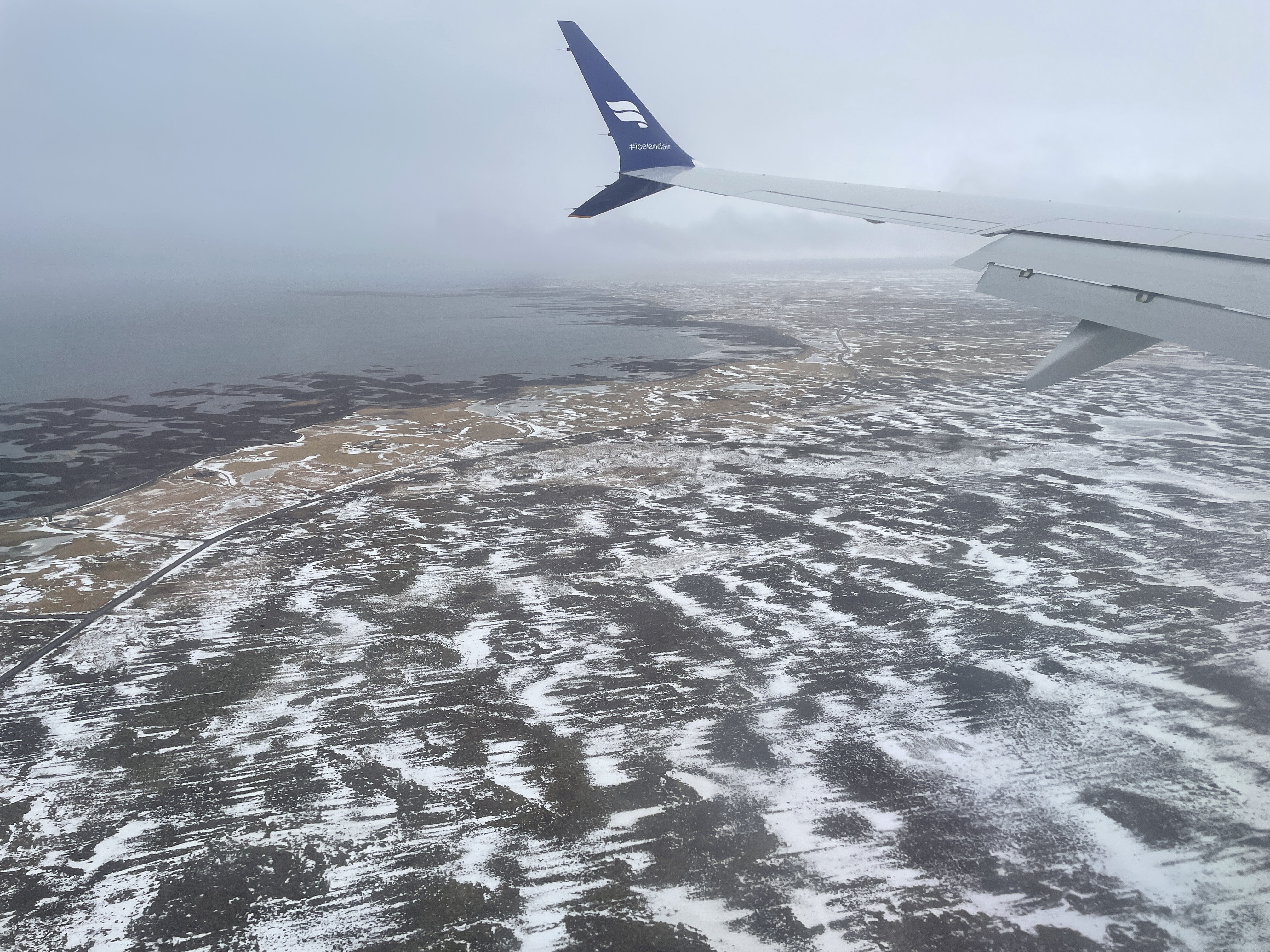 As we come in to land and I lay my eyes on the landscape for the first time, it is nothing like I expect. There are no roiling waterfalls, bubbling springs, dramatic cliffs, or smoking volcanoes. There is just… flatness. The sea meets the land in fractal fingers that look like they could be washed away in just one extra-large wave. Resisting the sea’s advances are acres of black gravel, akin to the reclaimed spoil heaps of former mining towns. Late snow covers much of the ground, though not enough to give a winter wonderland scene. The light is flat, grey and murky, and so it will stay for most of my trip.