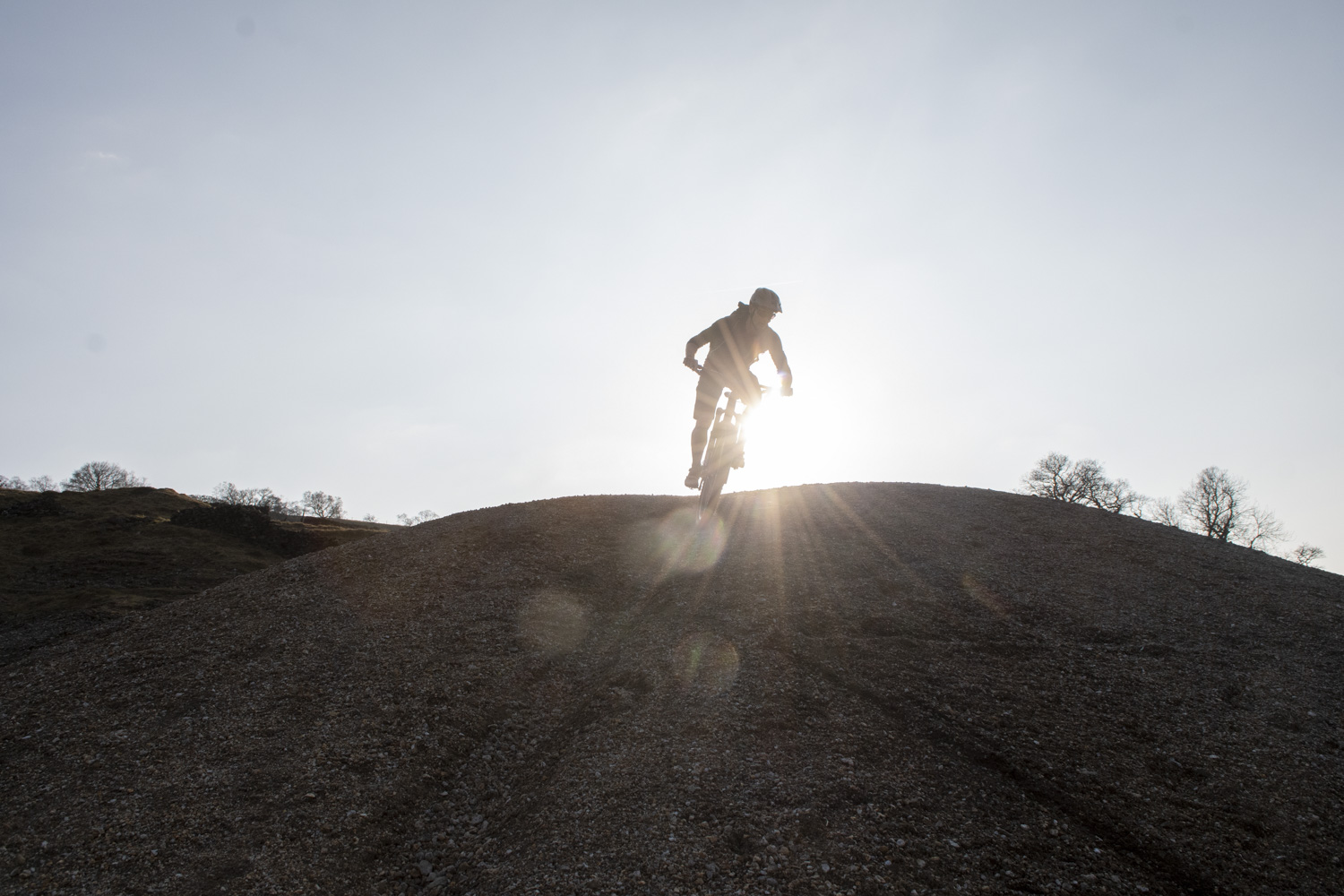 Unfortunately, at this point Adam over-cooked an off-camber Scandi flick, washed out the front wheel, and sent himself and the bike flying. I was aiming for a nice silhouetted shot at the time, and shooting on burst (I am so sorry, photographer friends) so I got a good ten frames of progressively more squirrely bike-crash action before I had to duck and scurry for safety, as Adam took himself and his bike for a bit of a tumble past me. He managed to keep his, admittedly almost dignified, slide to just a few metres, but his bike was having none of that. Long after Adam stood up, his bike was still inelegantly pinwheeling its way down the slope to the bottom.