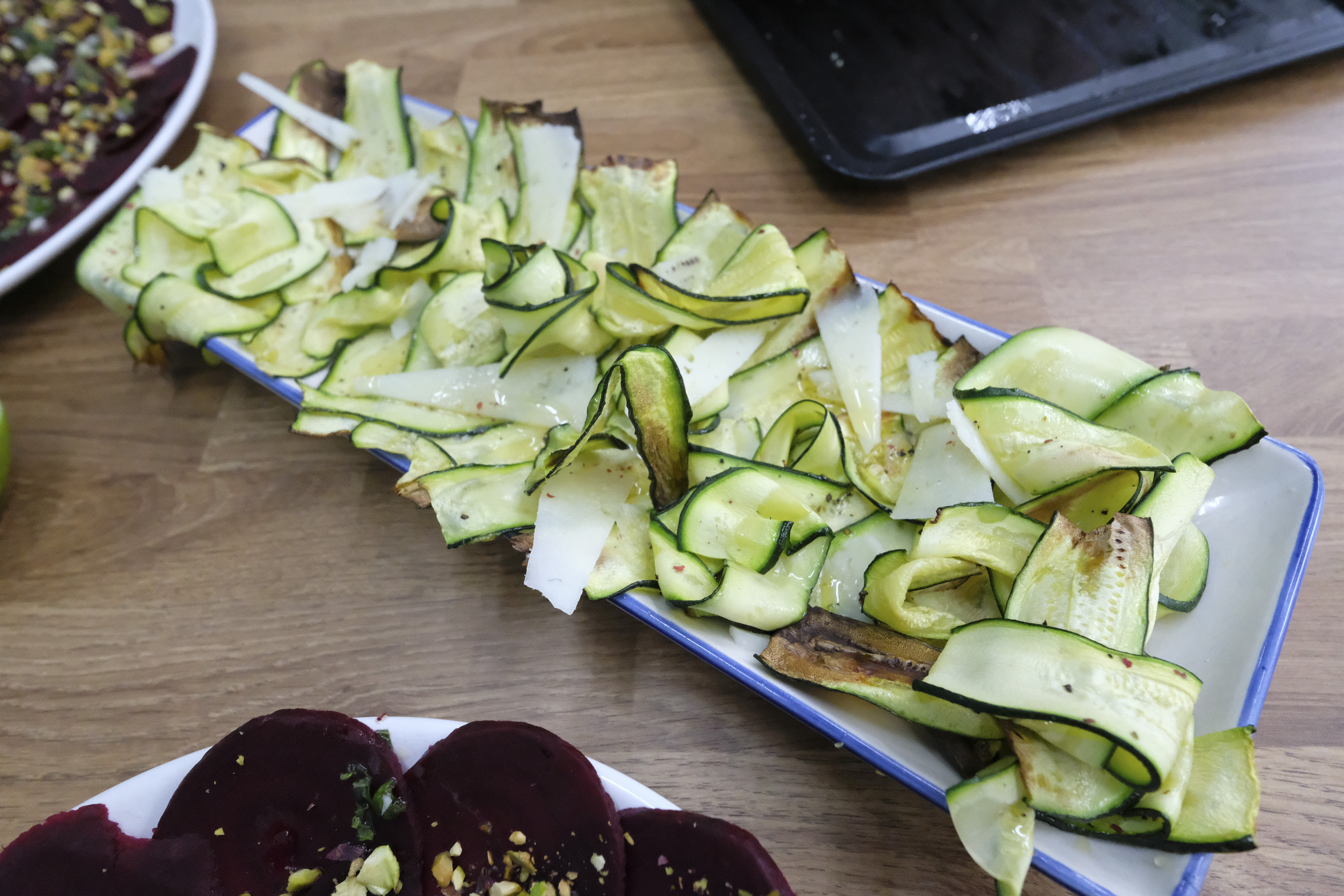 1. Slice the courgettes wafer thin, lengthways, ~3mm thick.