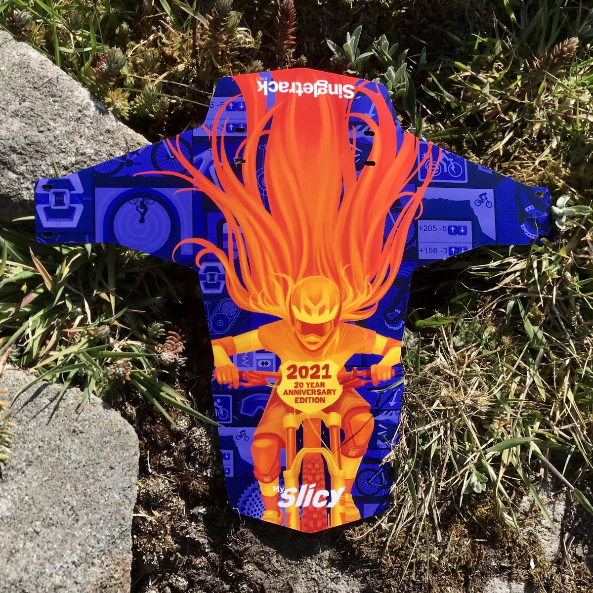 Anyway, for those who like to avoid mud facials, we have a birthday discount offer on mudguards for you: We’ve reduced their price down to £11.99, plus Singletrack World members get free postage. Clearly the flaming haired shredder adorning this mudguard is modelled on me, and any similarity to Amanda is a total coincidence. OK… but how popular would a frizzy grey haired bimbler in dungarees be? It’s a look, but not a popular one.