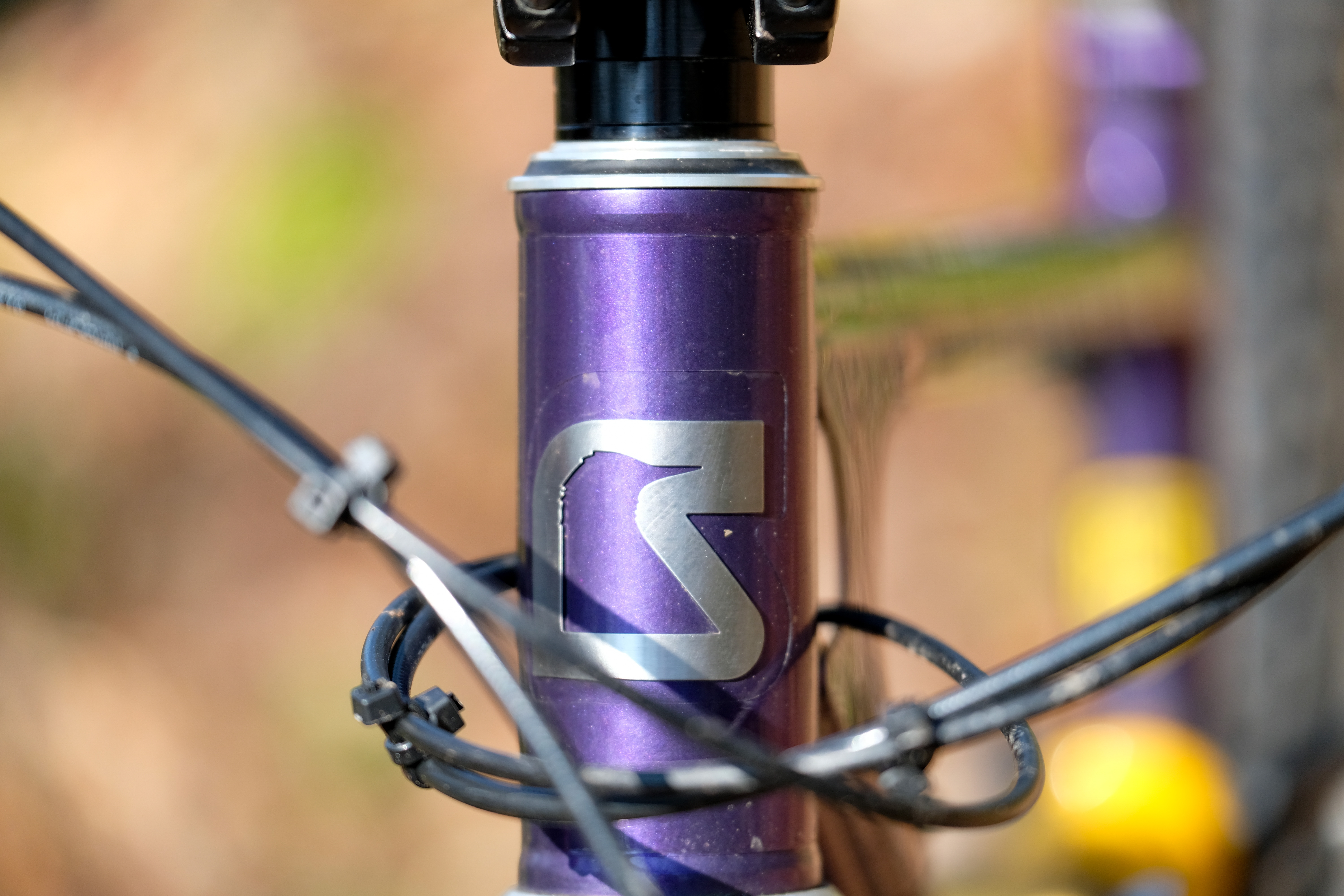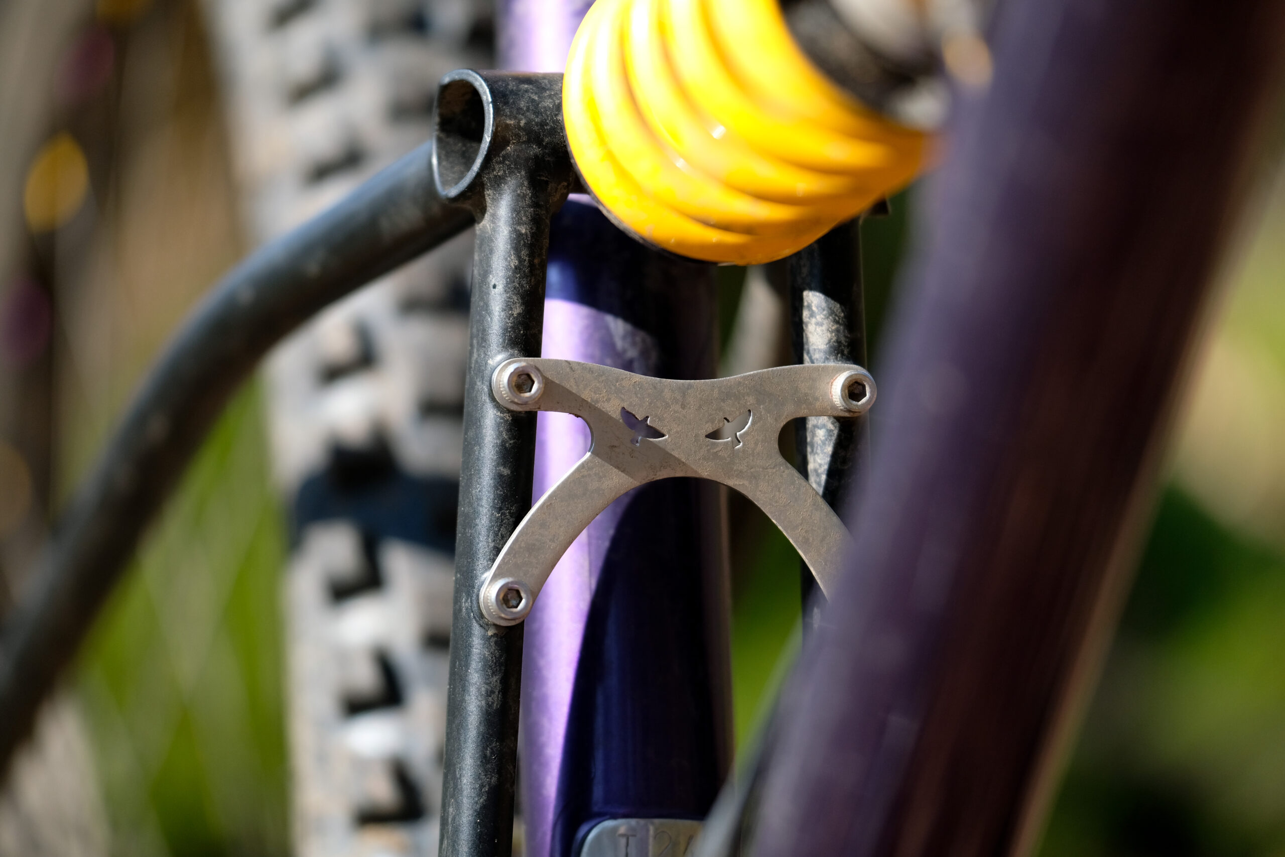 The frame is made from steel. The front triangle is built in the UK from Reynolds 853. The swingarm is made in Taiwan, by ORA, from heat-treated chromoly. The whole frame is simultaneously no-nonsense yet overtly style conscious. It doesn’t need to have those bird cut-outs in the gussets and cross-brace. And that cross-brace between the uprights of the swingarms doesn’t have to be shaped like that does it? But it is. Because why not? Tiny bits of joy. Refreshingly cute (camp even) and old-fashioned in the all too aggressive and sharp-edged world of contemporary mountain bike design.