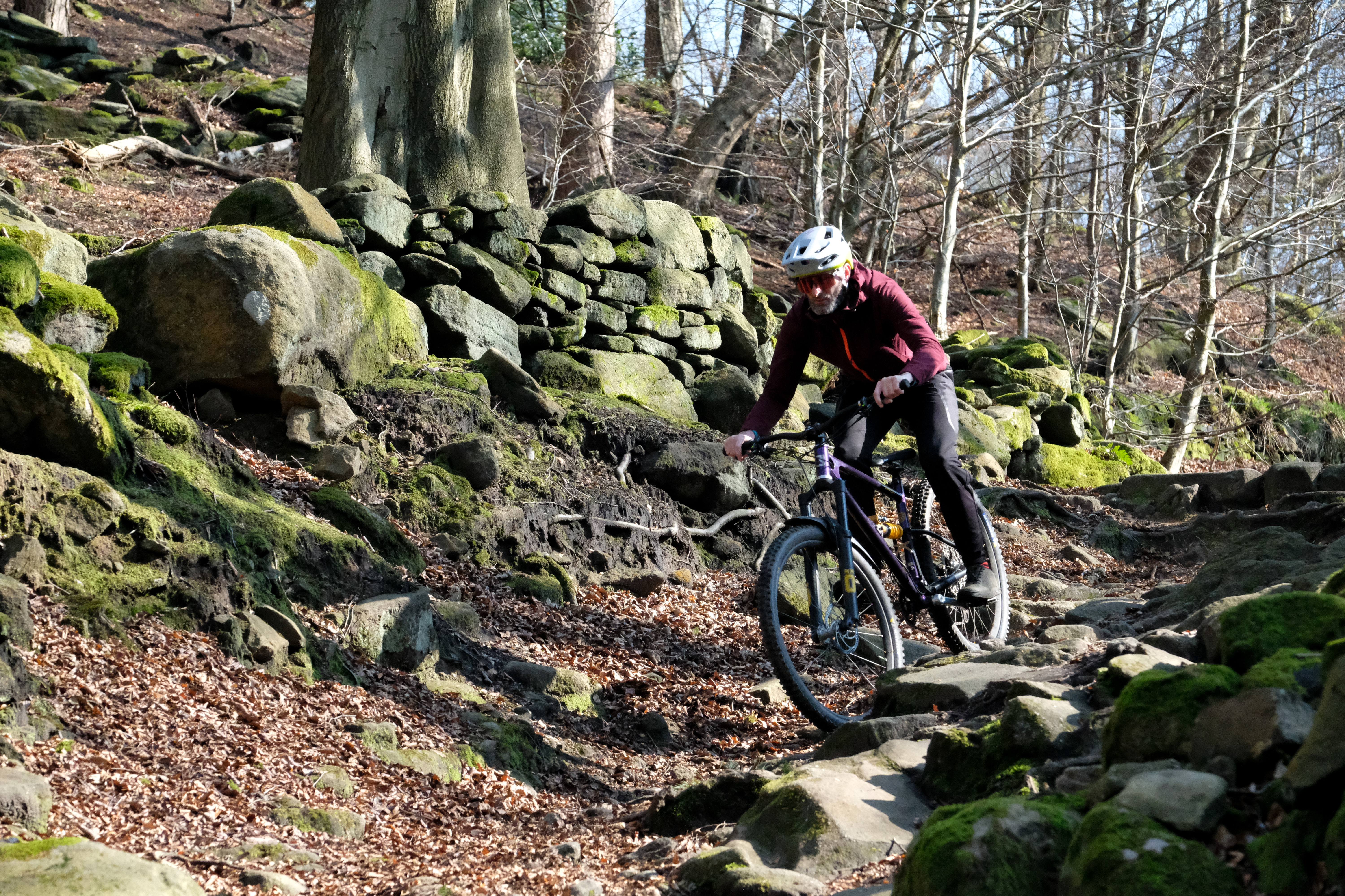 Where the geometry rewards – nay demands – being ridden in the best elbows-out, knees-down ragging as is feasible, it’s the frame handling that lets you get away with things. There’s a larger margin for error. There’s less deflection. There’s less tyre washout. There’s more feel.