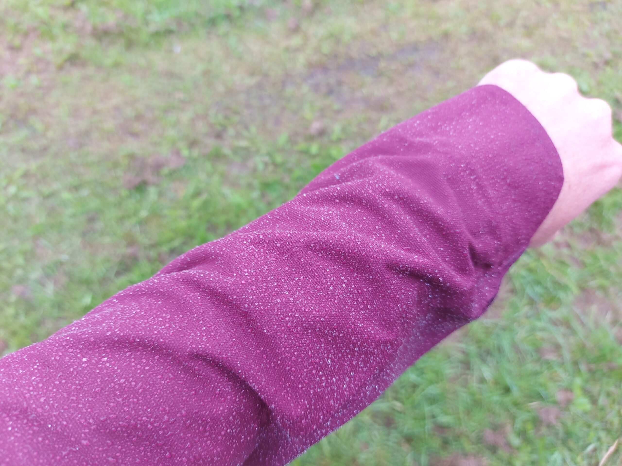 The sleeves are a perfect length. The modest extra bits that extend a bit over the top/forward of the wrist do an effective job of helping to keep chills and dampness from getting inside the sleeves. I didn’t mind the lack of adjustment of the cuffs (they’re simply elasticated slightly).