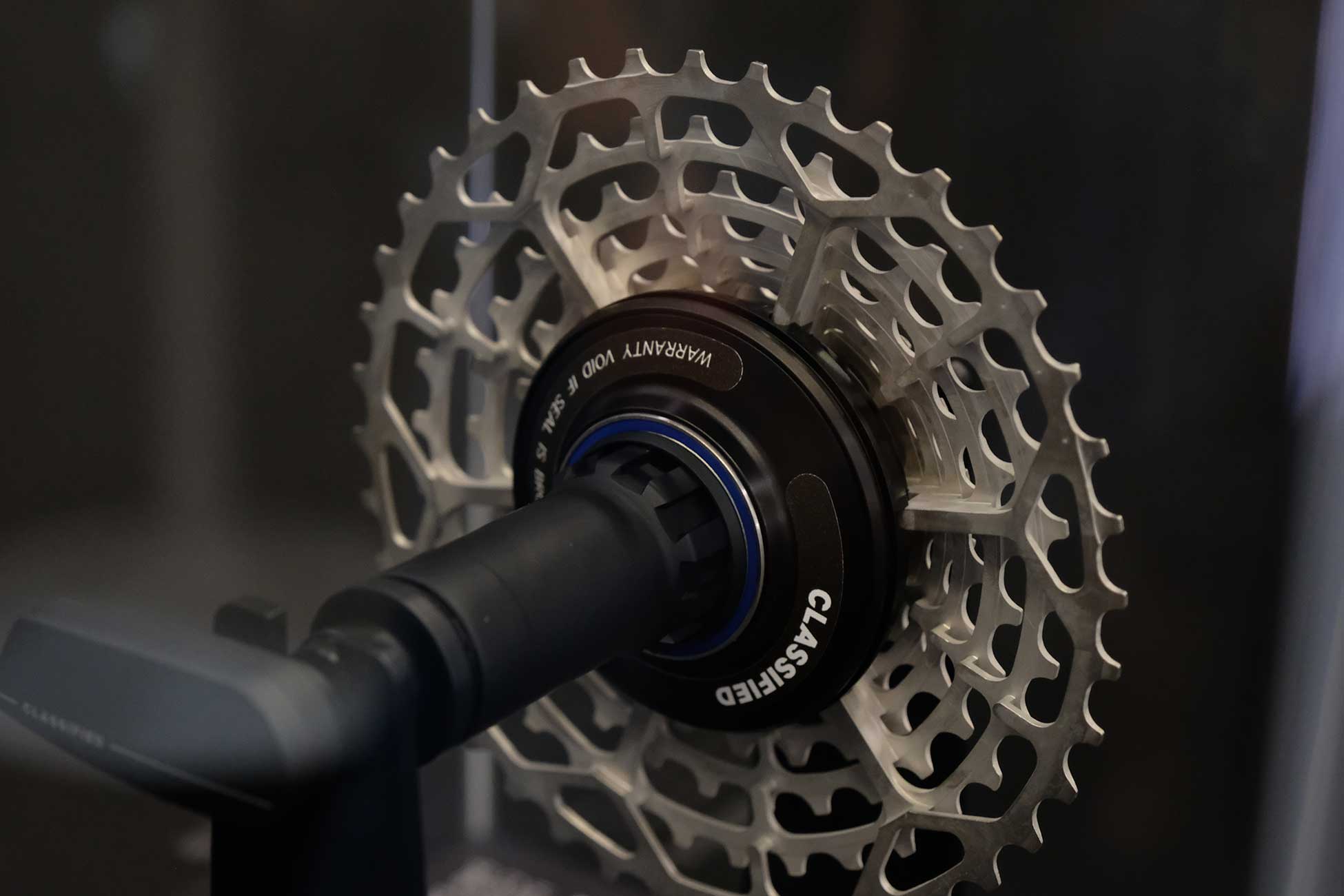 More hubs â and possibly on the âgame changingâ level, depending on how many gears you reckon you need. Or how seamlessly you want your gear changes and ratios to be. Classified is a company that has basically made a two-speed hub gear actually work for the 21st century. Despite being as far from a Sturmey Archer hub as youâd imagine, the hub features an internal gear system that offers either 1:1 ratios or 0.67:1 ratios. Itâs shifted wirelessly with high speed and little fuss, and it fits a normal thru-axle frame. Classified reckons you can shift under full power up to 1200Watts. The weight is similar to the components youâd have lost (front mech, shifter, cablesâĤ) although you will need to run Classifiedâs cassette. But didnât we already lose our front mechs? While the main push is obviously for road bikes, Classified already has prototypes for mountain bikes and gravel ratios. Some riders, and many racers, donât like the big jumps between gears on modern 10-51 and 10-52 setups, so Classified will be offering an 11-40 cassette with smaller jumps between gears and a lighter overall cassette weight. Weâll have to see where this goes, but a quick test pedal showed it to be very responsive and fast.