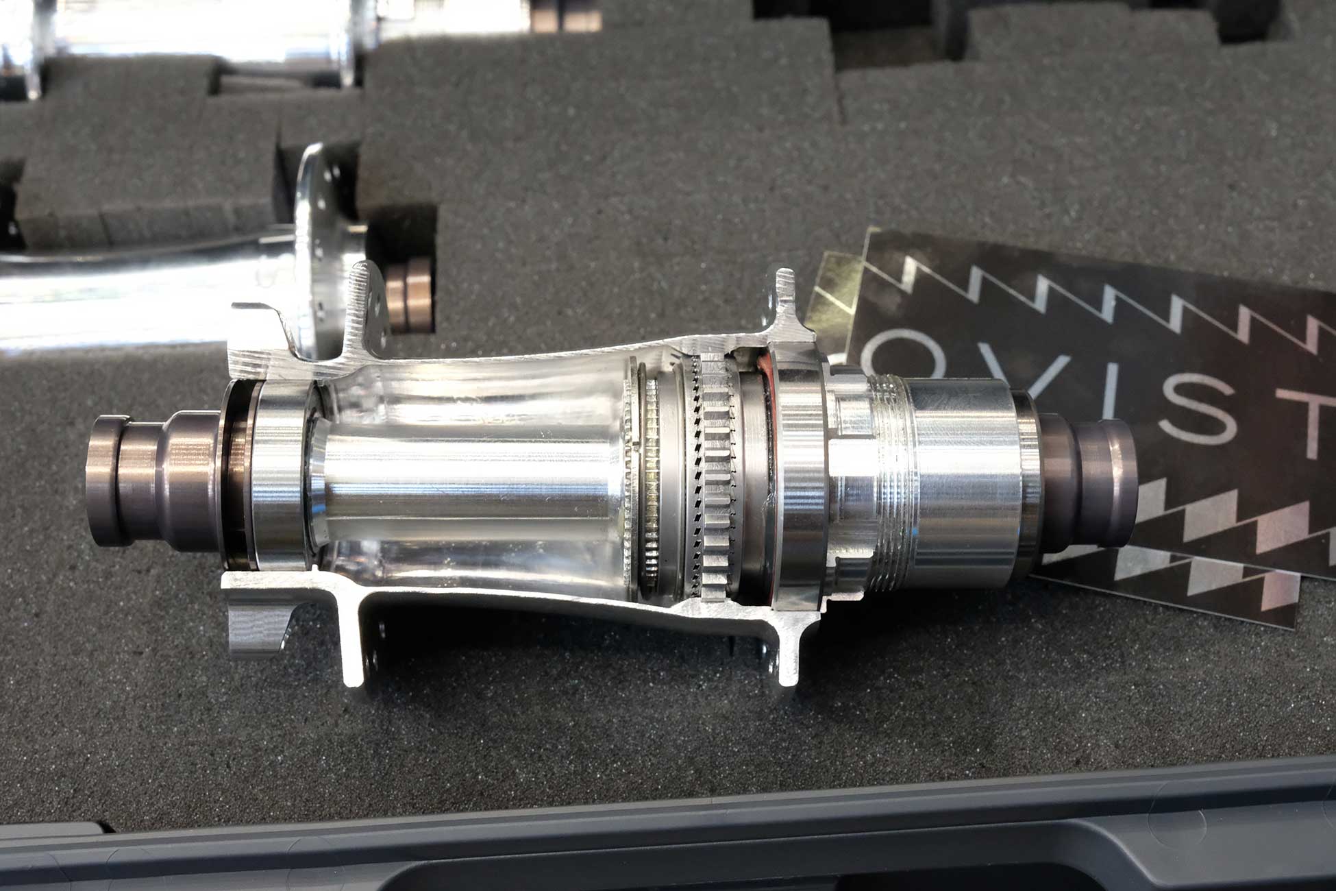 This company hails from Dresden in eastern Germany. Itâs an area with a strong watchmaking tradition (like Biel in Switzerland, home to DT Swiss) and this is evident in Qvists lovely hubs. These days weâre used to the dull efficiency of Shimanoâs pawls, or the DT Swiss star ratchet, or the bee buzz of Chris Kings that itâs hard to get excited about something that promises a new way of doing things. However, Qvist seems to have done that with its clever twin ratchet system. Itâs like a two sided DT Swiss ratchet, so that the stepped ratchet ring engages alternately on either side of the mechanism, effectively speeding up engagement and, with 128 clicks, lowering the angle between clicks to less than 3°. The hubs will be out in 2023 and will come in Boost six-bolt, in SRAM XD and Shimano Microspline. Hubs are 270g rear and 145g for a front. Pricing will be âless than Chris King, but more than DT Swissâ â so look around Industry Nine levels. Gravel hubs are in the works too.