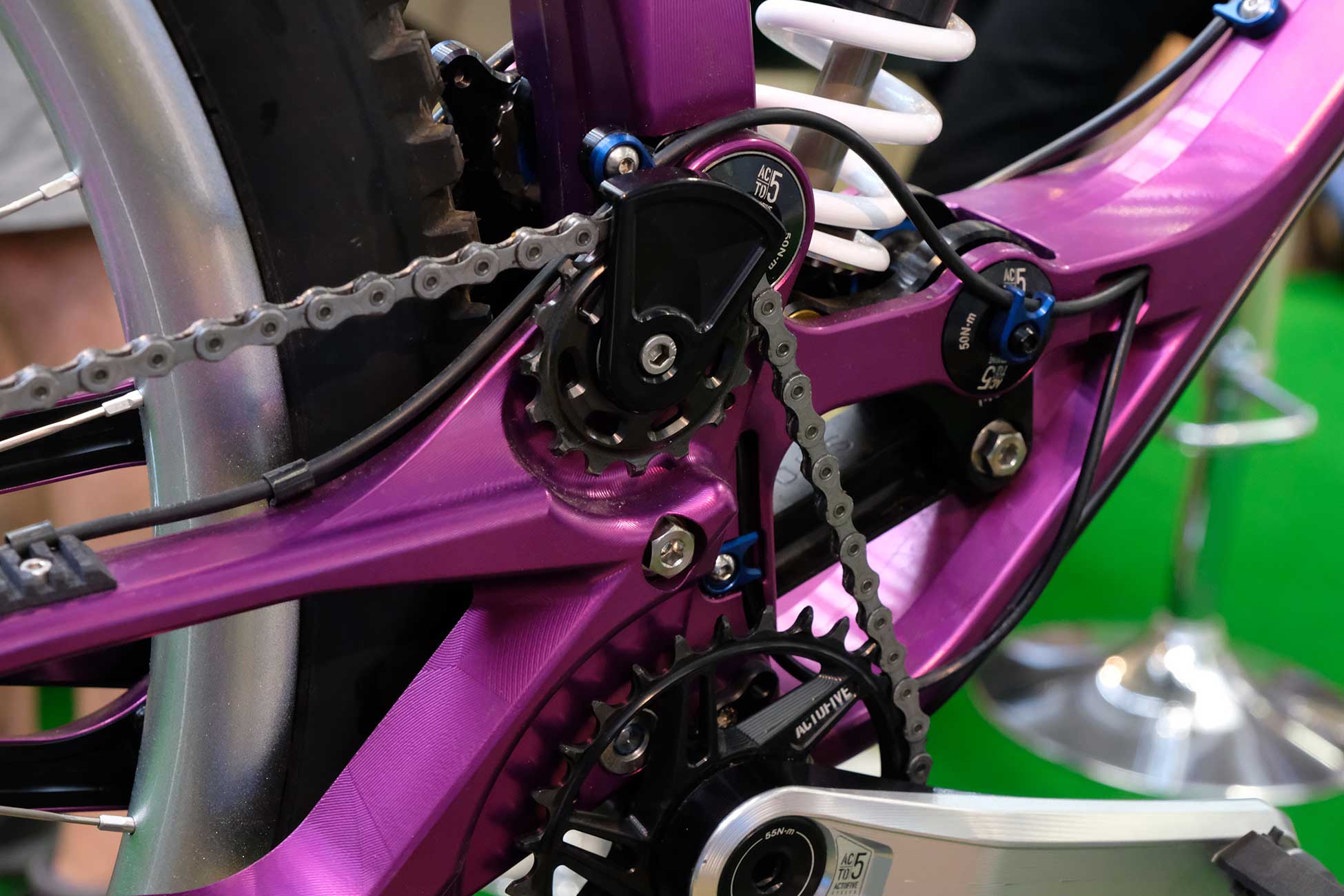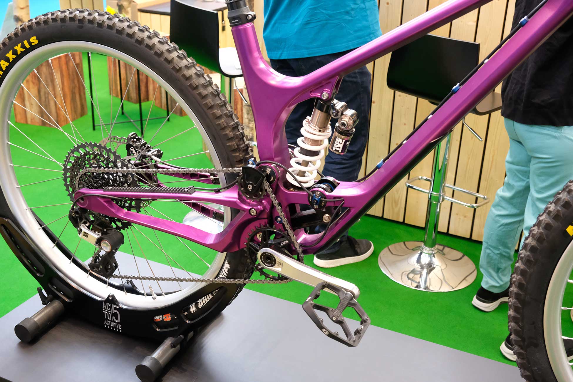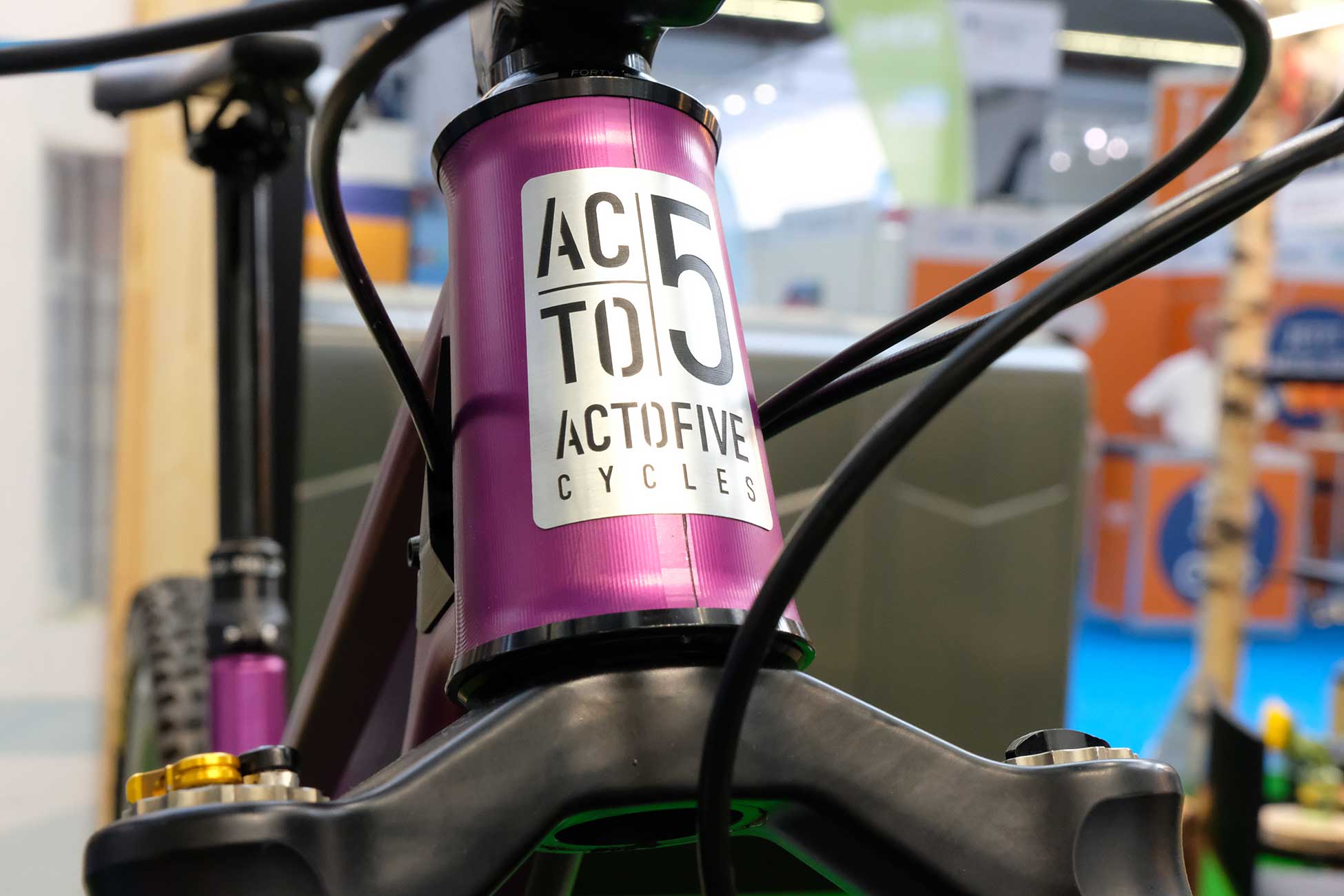The ActoFive P-Train bike is machined in a factory that makes CNC machines, by a mountain biker who studied metal bonding, both things that are very much in evidence on this bike. The P-Train CNC is a high-pivot 29er with 135 or 145mm rear travel and a 150-170mm fork. The two frame halves are CNC machined and then glued together. And itâs just very, very pleasing to look at.