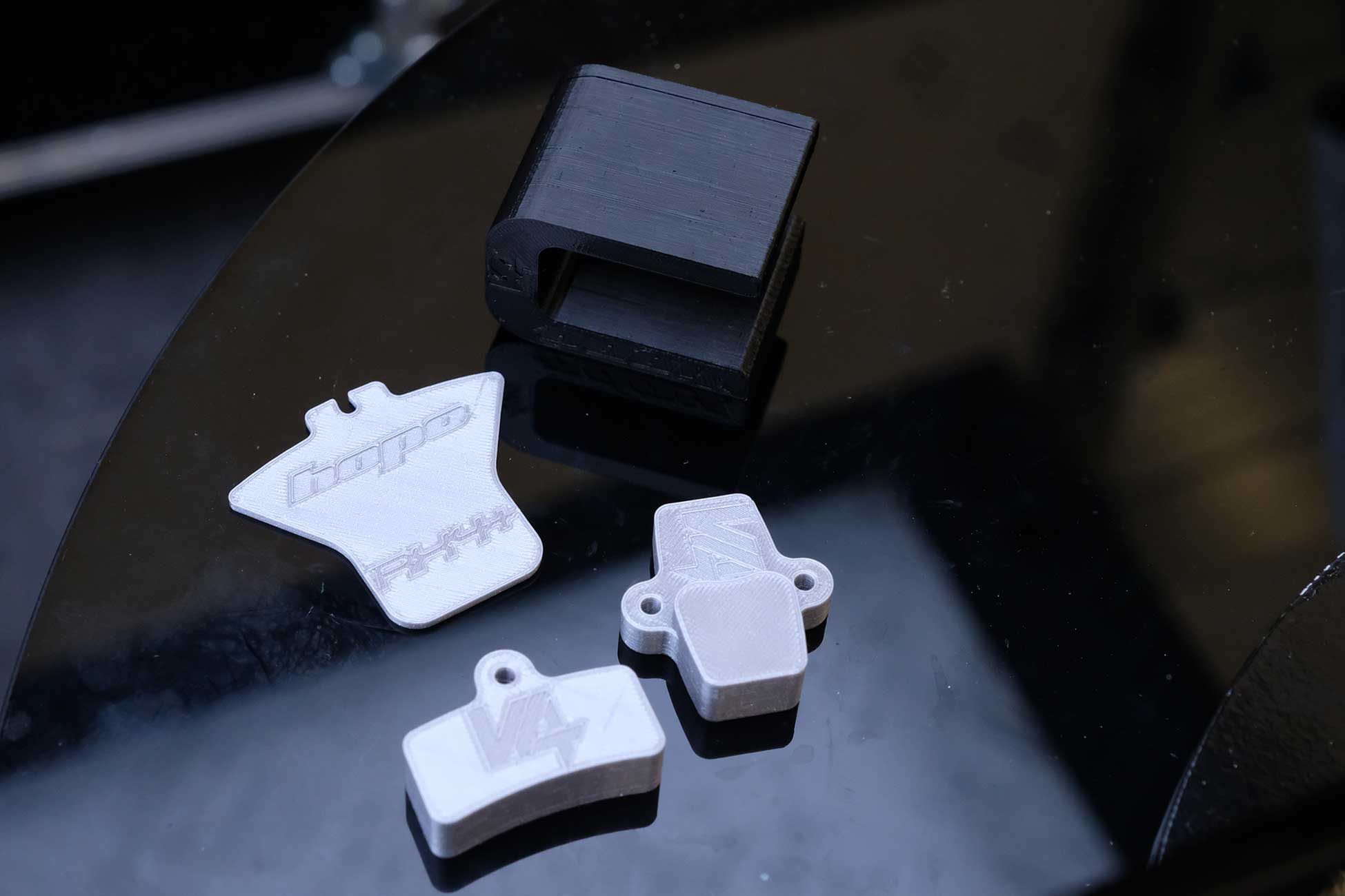 Possibly the best bit about the Hope stand, were these brake bleeding blocks and pad spacers. No big deal, everyone makes them. This time, though, Hope isnât making them. Hope is going to be providing the source files to let you download and 3D print your own. And if you donât have a 3D printer, just ask a teenager to print them at school for you.