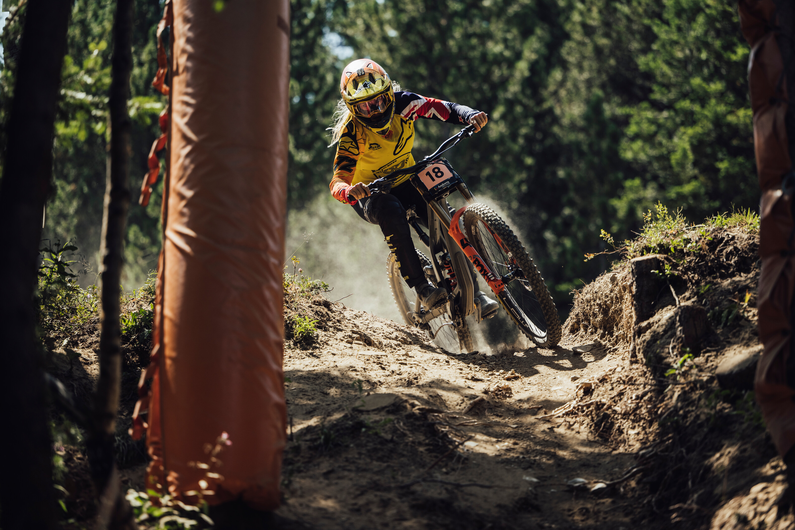 Winner last weekend in Lenzerheide, Myriam Nicole has the raw pace to challenge Vali and she’s equally as aggressive, turning the clock green before crashing out near the bottom for her first finish outside the top 3 this season. In qualifying, the winner of Round 2 in Fort William, Nina Hoffmann was fastest until the last split. The German really went for it in Fort William but today she’s not taking as many chances. Down by 2.3 at Split 2, she’s going around rather than straight and losing time to Hoell all the way down. The standard is so high now that if you want to win you just can’t ride like that. She still crosses the line in second though, 3.5 seconds back.