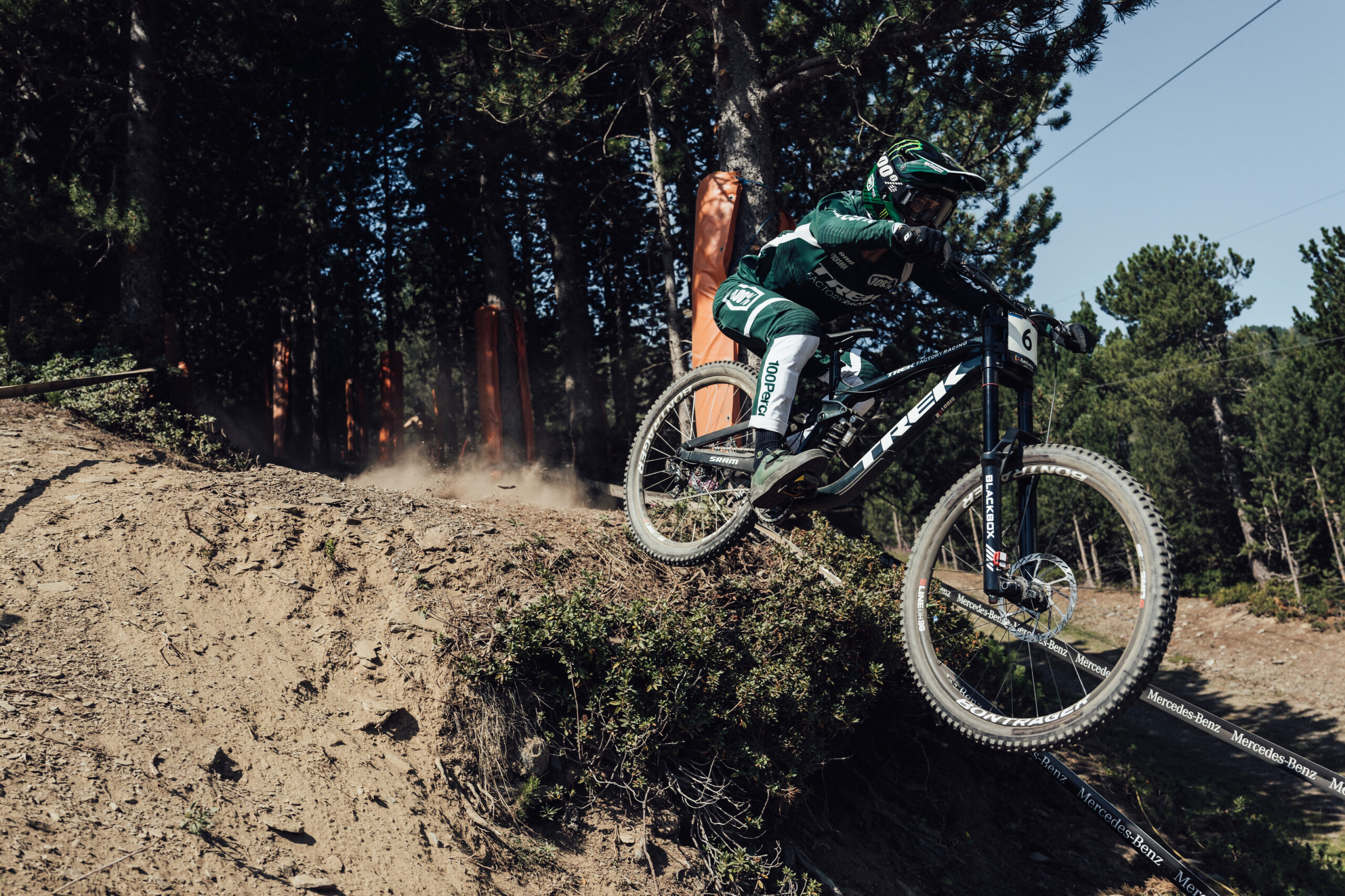 In the race preview I suggested it might’ve been good to race the old track in Andorra one last time. I was wrong. What. A. Track. Steep, short and very, very fast. Starting at just shy of 2400m where there’s 24% less oxygen, riders drop 457m in under 3 minutes and aside from the sprint out of the start gate and the sprint for the line, no other pedal strokes are required unless you make a mistake. Conditions are loose and it’s so dusty that full mud spikes are the order of the day.
