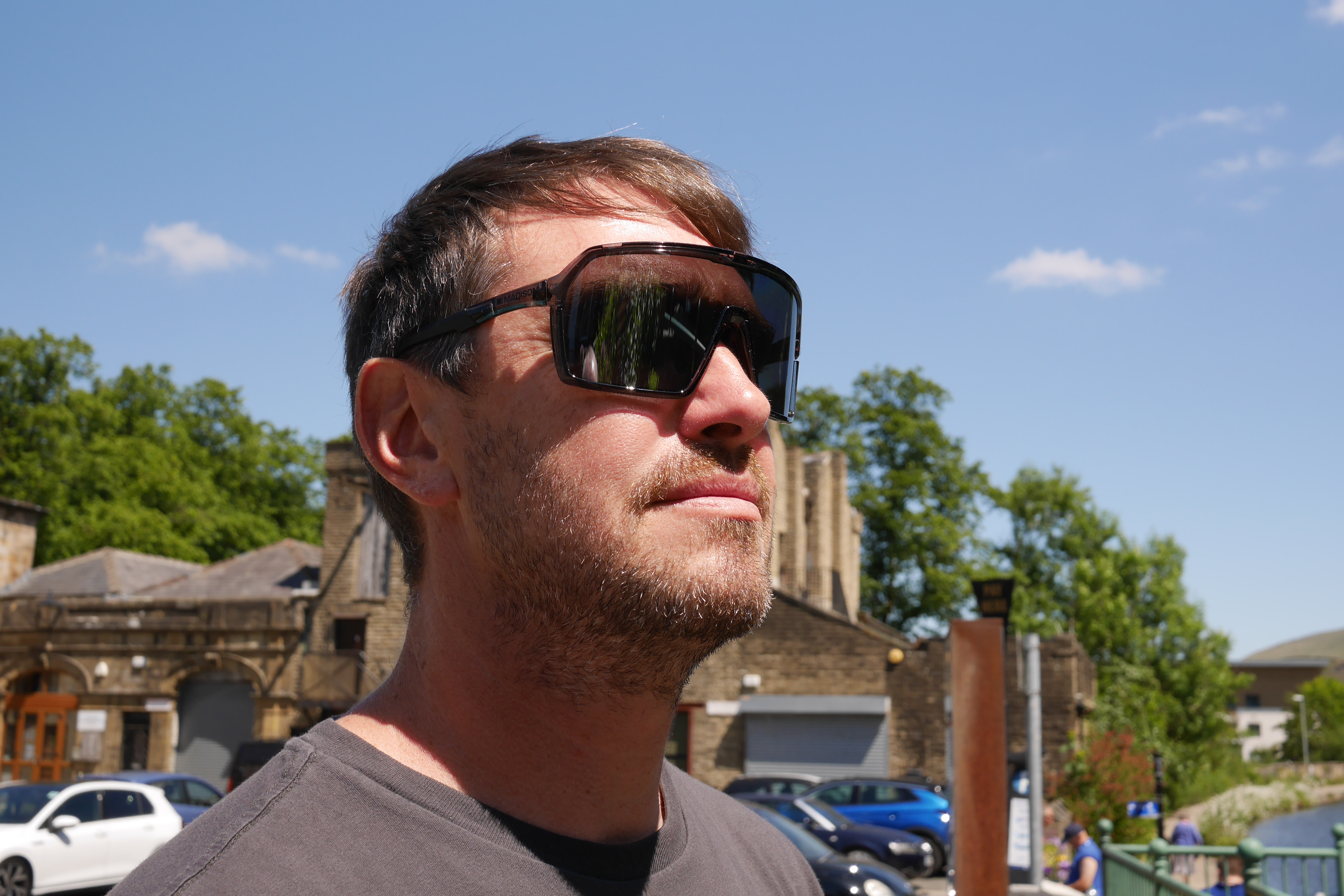 Frame is made from that there TR-90 plastic with ‘memory’; they flex and return to their original shape. Ross duly stoved his head into a bush during a weekend up in Scotchland recently to test this feature. It worked.