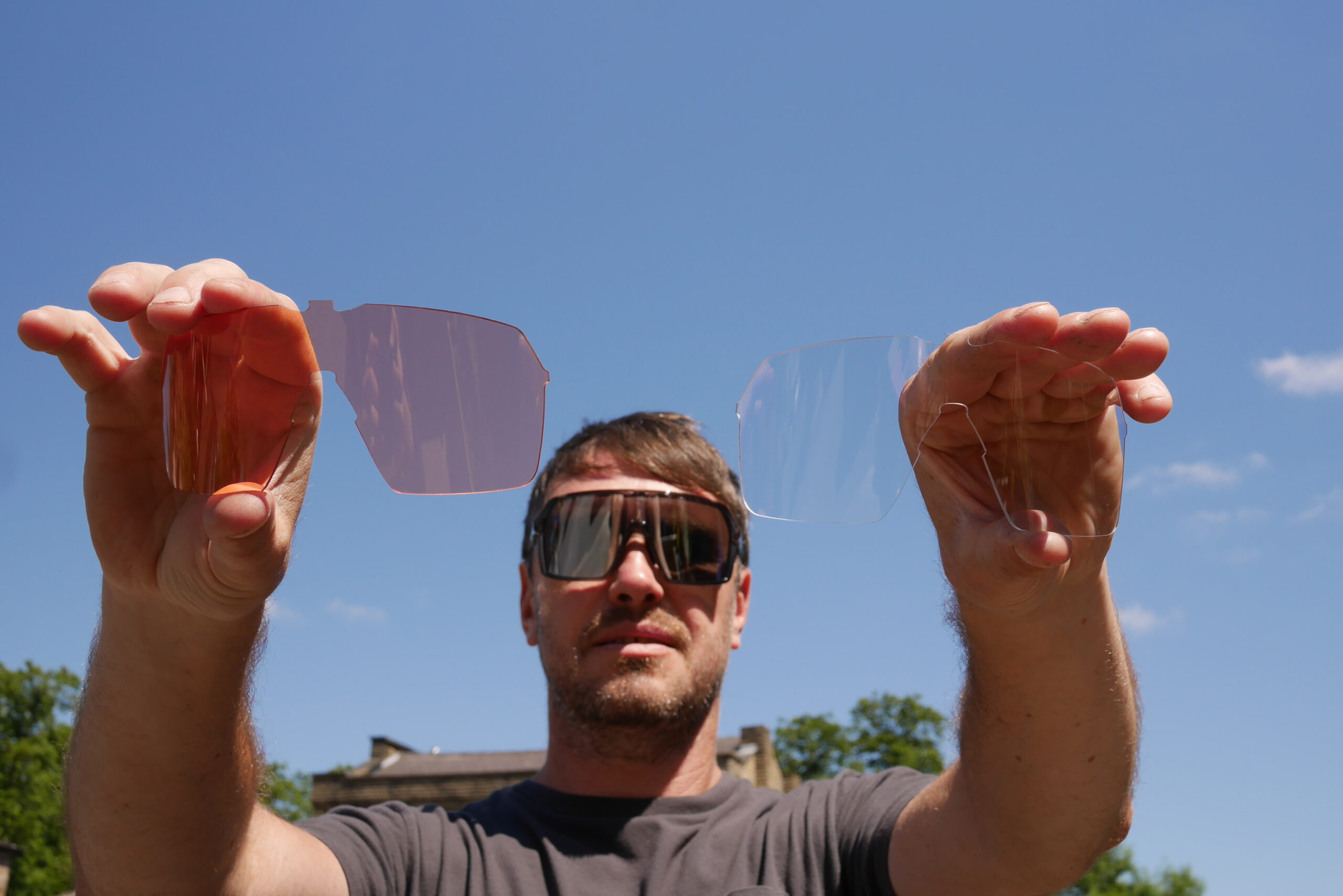 Big coverage shades at a very fair price. Three lenses: one tinted lens for bright conditions, an amber lens for medium-light conditions and a clear lens for low-light conditions AKA 3-Season Great Britain. Along with a hard case for safe transportation and a soft case for lens protection on the move.
