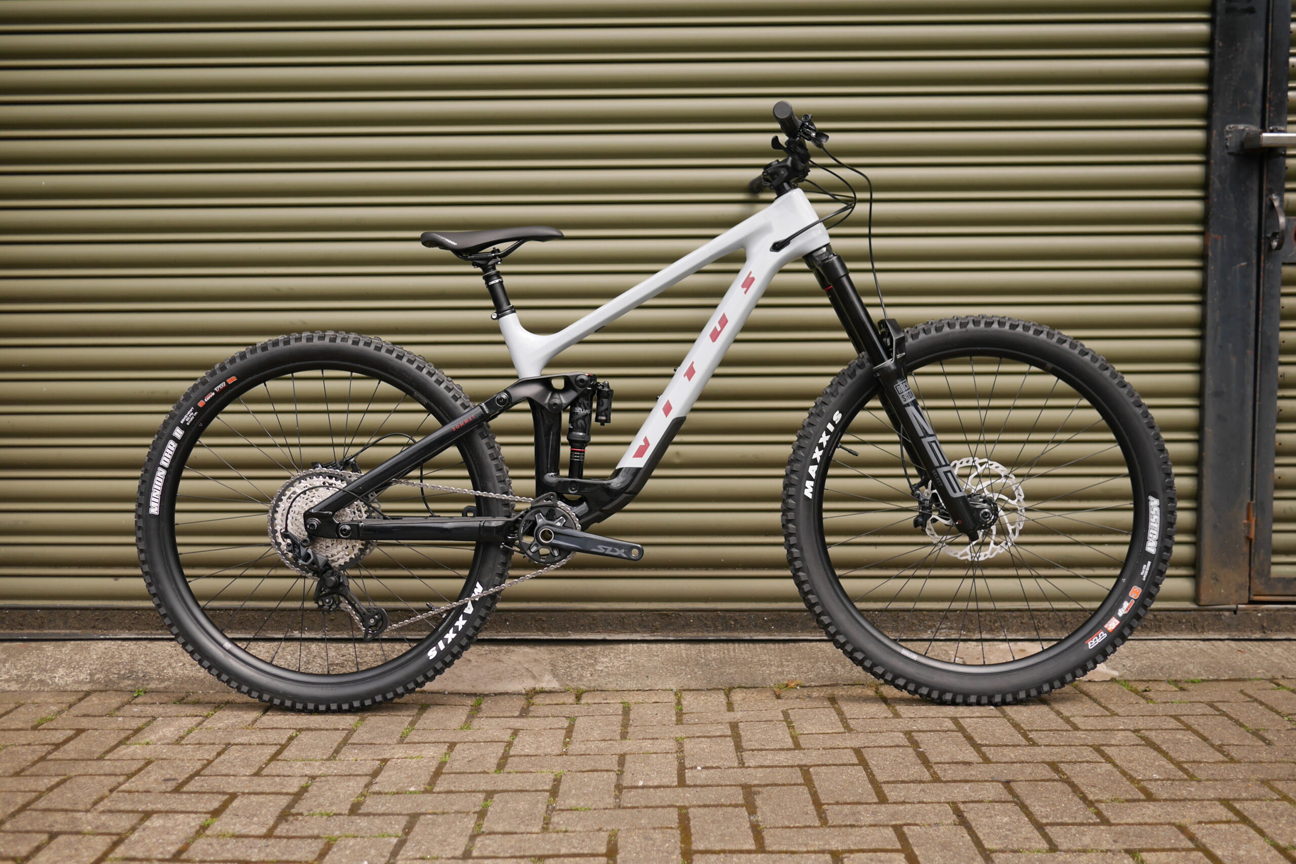 Carbon front. Alloy rear. Zebbed. 4-potted. Maxxised. Nukeproofed. Looks fun.
