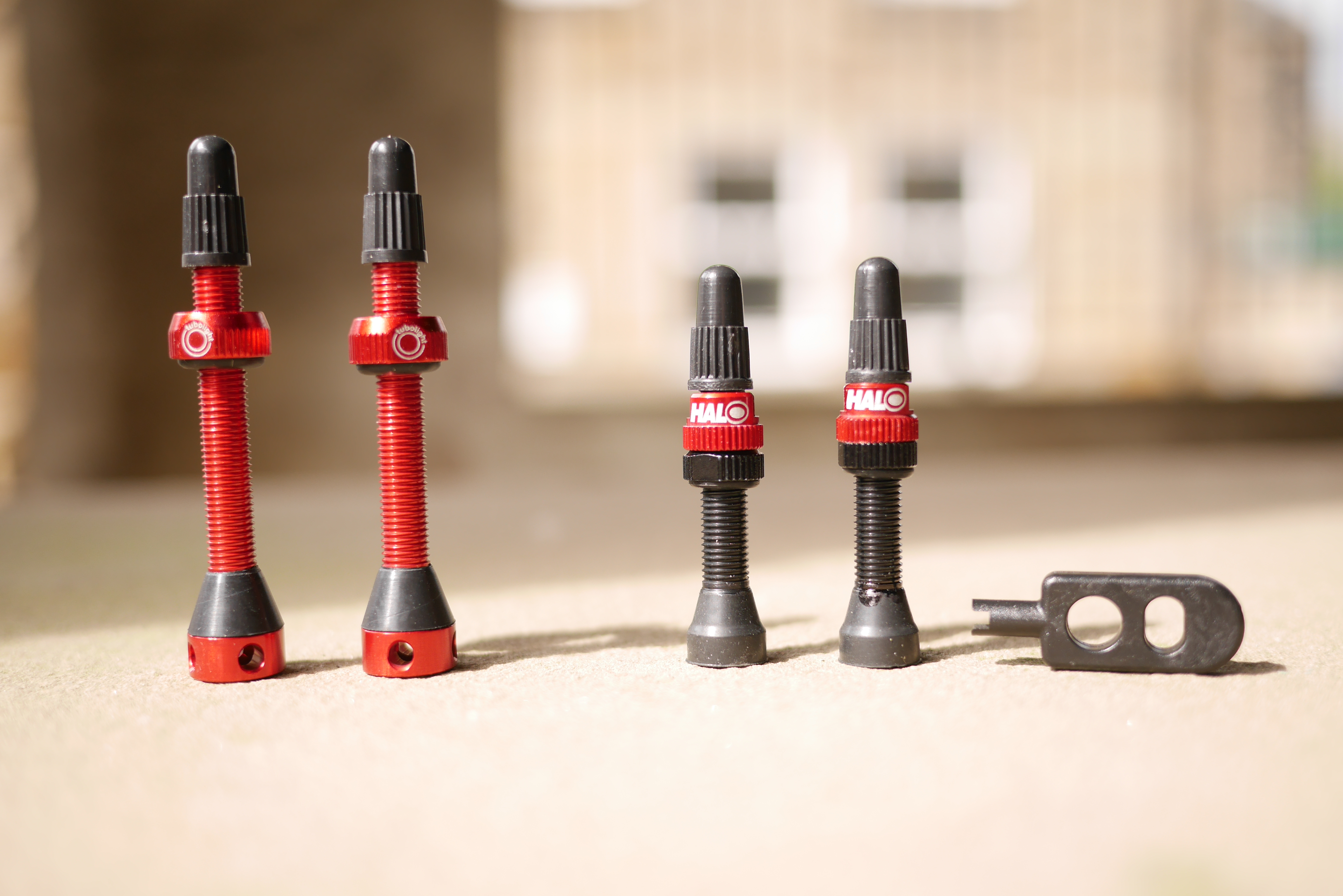TuboLight’s valves are (unsurprisingly) insert-friendly with four side-airflow ports for use with tyre inserts. Halo’s valves are more trad but do come supplied with three valve core removal tools – one that can be stored on each valve like a lockring and another larger one for your toolbox.