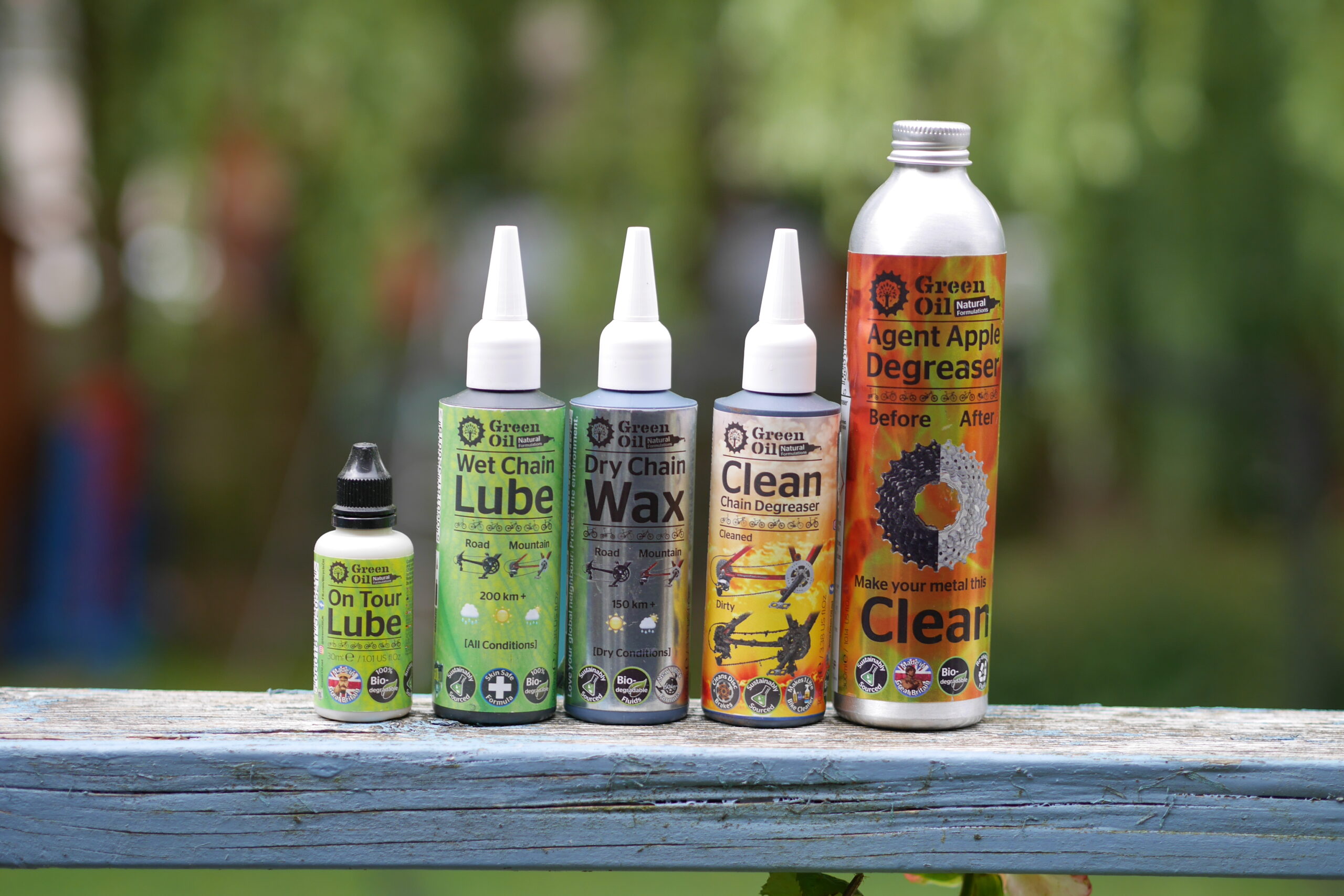 - Price: On Tour Lube £3.99, Wet Chain Lube £8.99, Dry Chain Wax £12.99, Clean Chain Degreaser £7.99, Agent Apple Degreaser £16.99