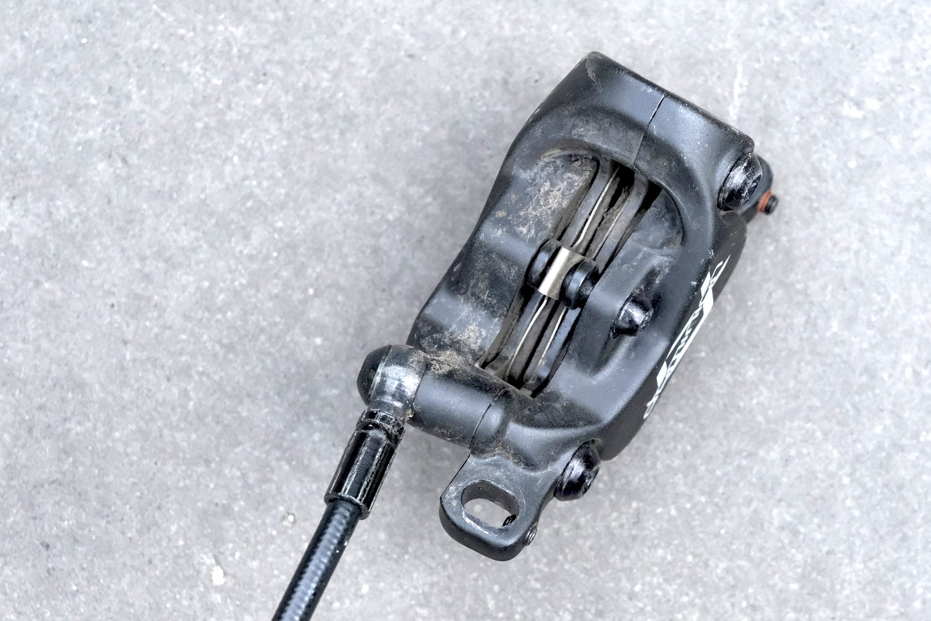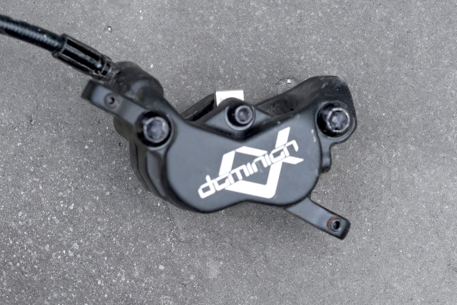 The headline feature on the Dominion brakes is the Crosshair caliper alignment system. Essentially they’re grub screws that allow you to fine tune where the caliper sits astride the rotor after you’ve done up the main bolts. While it no doubt works, it’s not reason enough alone to buy these brakes. There’s noticeably more space between the pads and the rotor anyway so they are ironically very tolerant of mild misalignment.