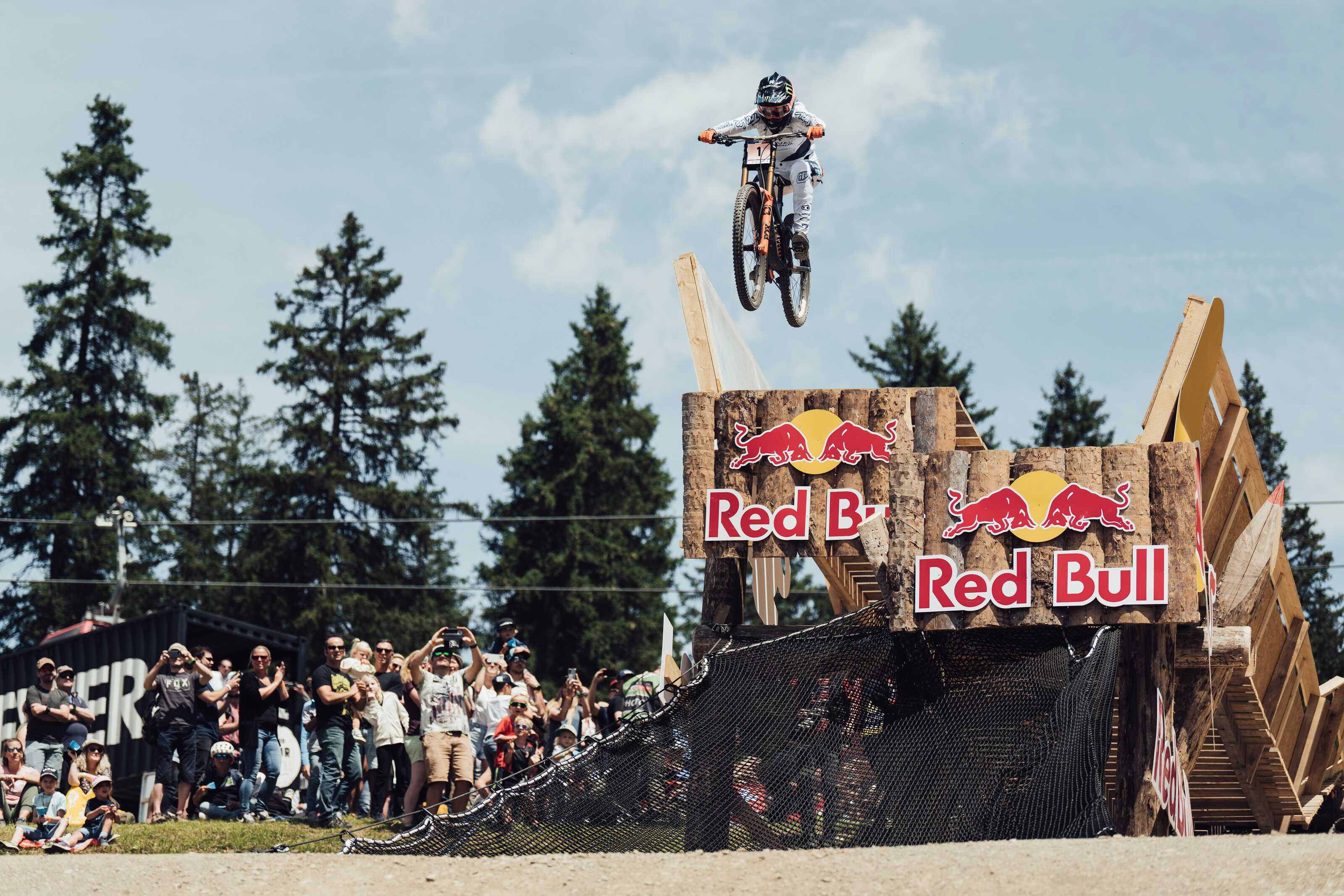 As you might expect there’s a bit of a lull. Those top riders are top riders because more often than not they turn it on on race day. Charlie Hatton gets close crossing the line 1.8 back, Thibaut Daprela goes into fifth but it’s not until Matt Walker with just seven riders to go that things really start to hot up. Walker crosses the line in third, 1.4 back. European Champion Andreas Kolb is green by circa 0.5 at the first 3 splits but Finn had such a good bottom section that he’s red by 0.3 when he crosses the line. 5 to go! Luca Shaw has a huge crash in the woods. Benoit Coulanges looks fast and smooth; a little too fast on the motorway, massively overjumping one of the jumps and crossing the line in fourth.