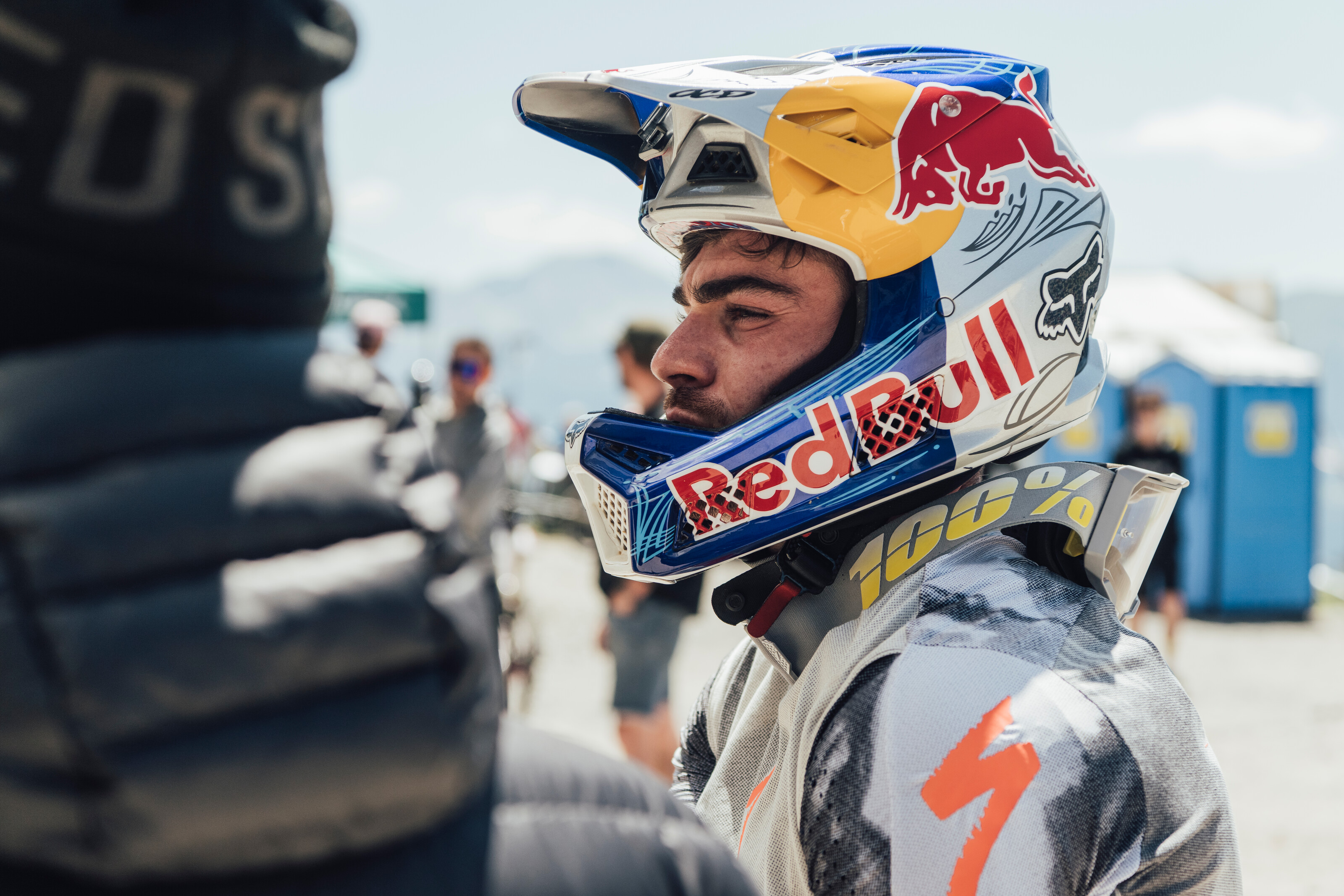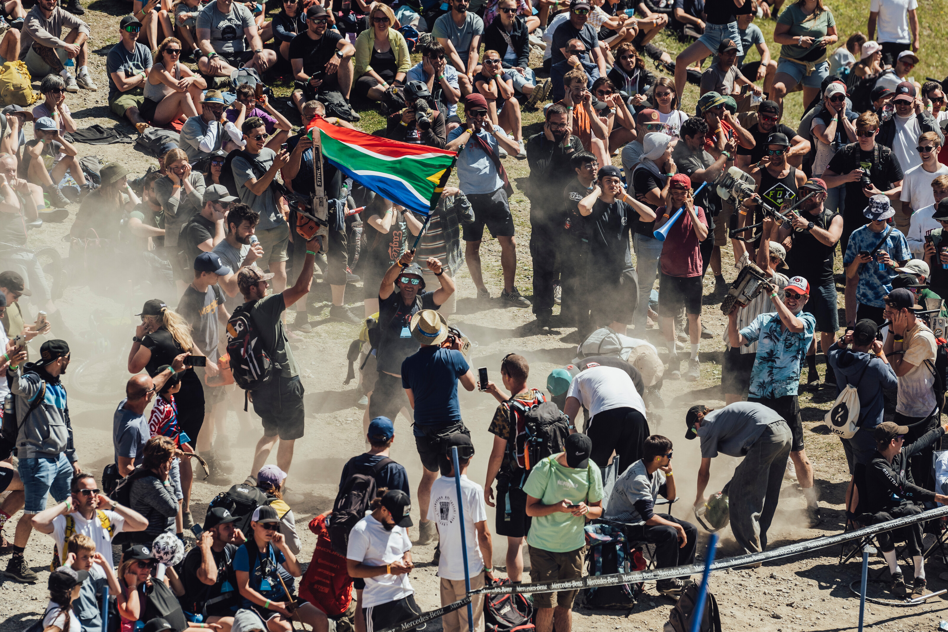 Straight after Gwin though came a glut of protected riders, some of the biggest names in the sport. The first of them was Loic Bruni. After breaking his collarbone in Fort William, we weren’t sure if Bruni would be riding this weekend and when he rolled out of the gate and straight off the track in qualifying, there was an even bigger debate about his participation on race day. As previously mentioned though he became World Champion in Lenzerheide in 2018 so it’s a track he likes. Despite some soreness after his first few days back on a DH bike, he crosses the line just 1.9 back, riding a soft set up to help his shoulders absorb some of the hits.