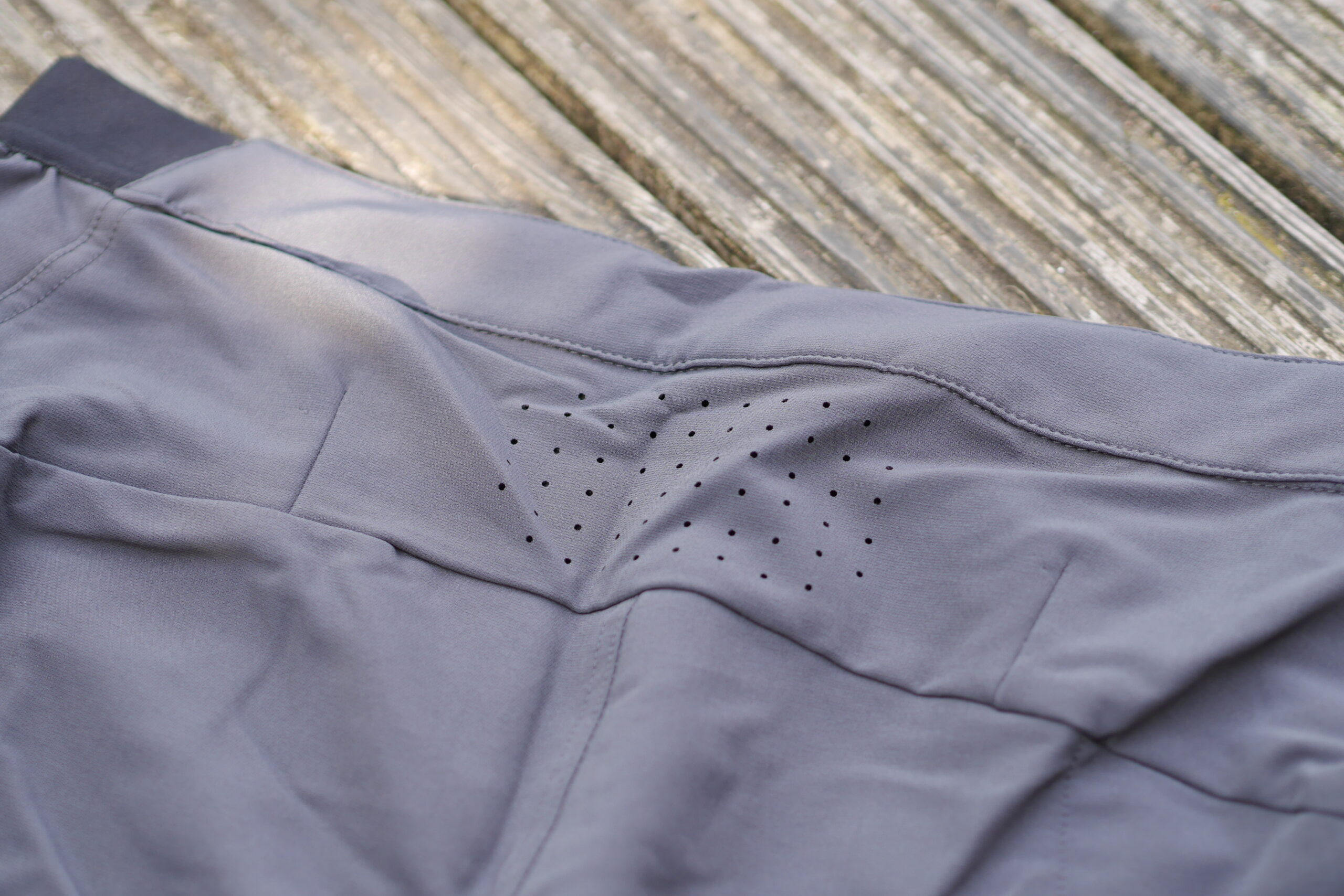 The material features a C6 DWR coating to help bead off trail spray and the thighs and thigh, hip and rear yoke feature laser cut vents to keep things when working hard and in warmer weather.