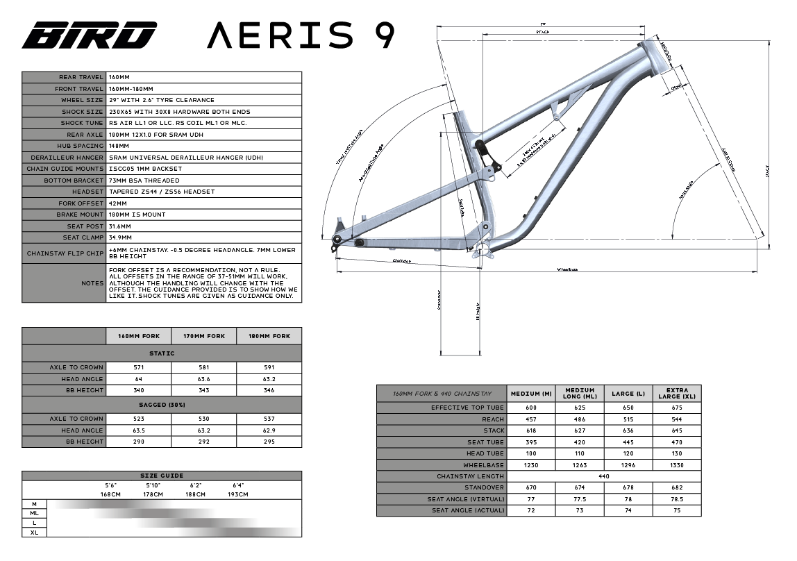 Prices for the BIrd Aeris 9 start at £1285 for a frameset without a shock and full bikes are available from £2870.