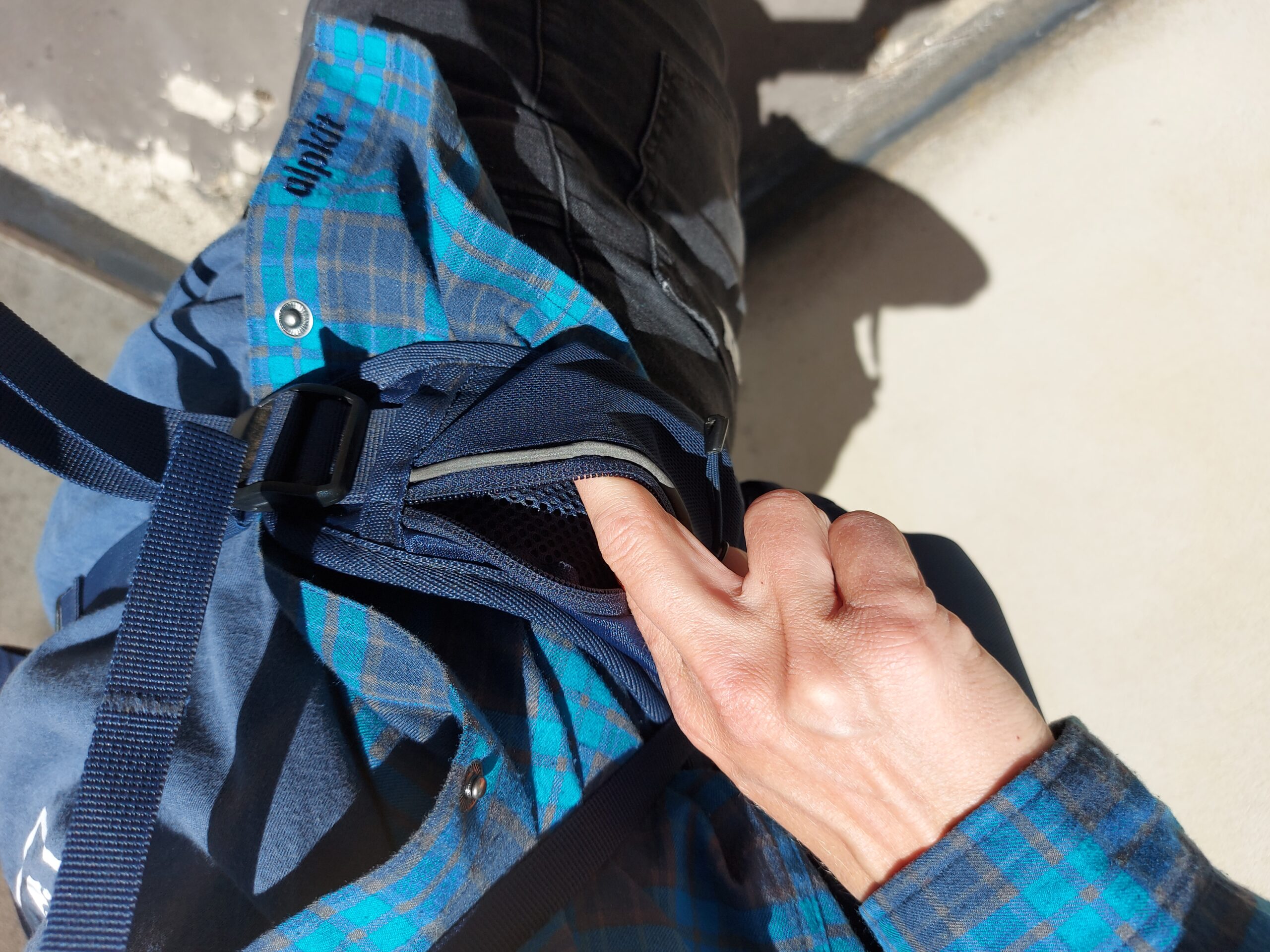 At the back, the ‘Airstripes’ system consists of two foam padded strips to hold the backpack away from your back. Neatly tucked away in the side of the pack next to the back protector is a phone pocket. This is nicely out of the way of any crashes and reasonably easy to access without taking the pack off, although slotting your phone in when there is a bladder in place is a little tricky. I wish the pocket fitted between the bladder and the back protector rather than the screen and the main compartment of the backpack.