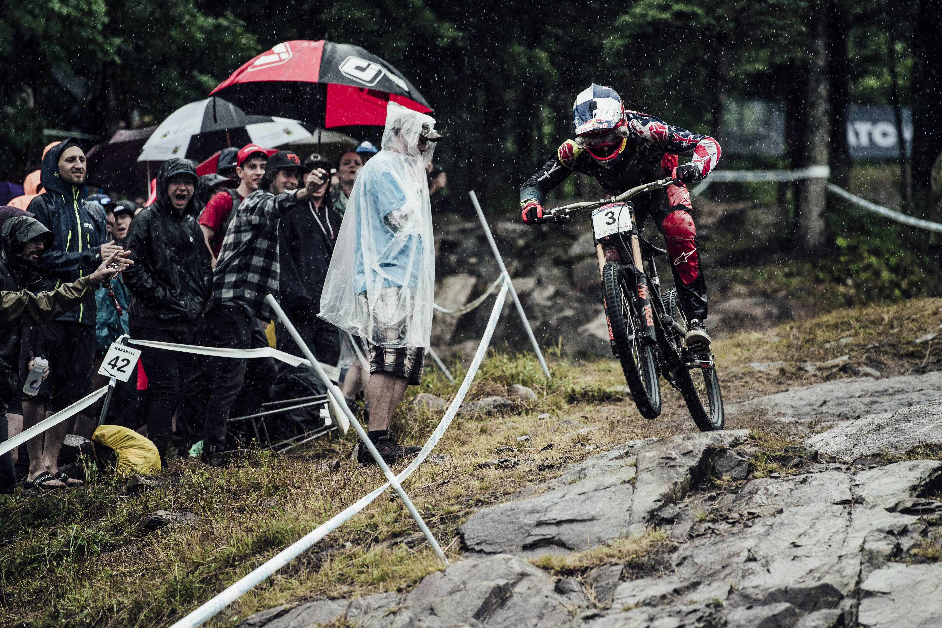 Perhaps the memorable race run though belongs to Aaron Gwin who delivered one of the greatest runs of all time to claim victory in 2017. With heavy rain coming in half way through the men’s race, 34th seed Dean Lucas looked set to claim his maiden World Cup victory. Fastest qualifier Gwin was having none of it though and claimed victory by over a second in biblical conditions…