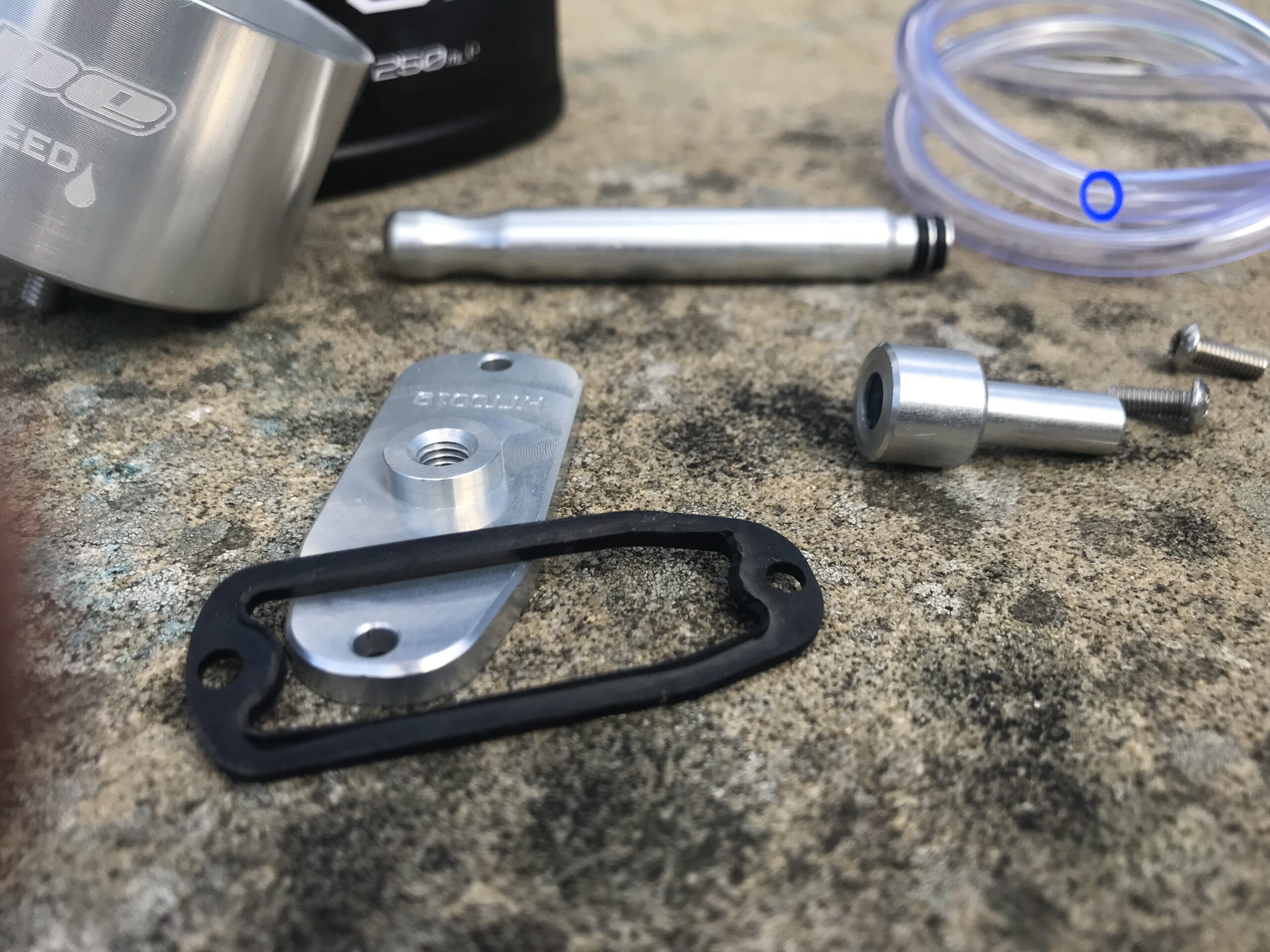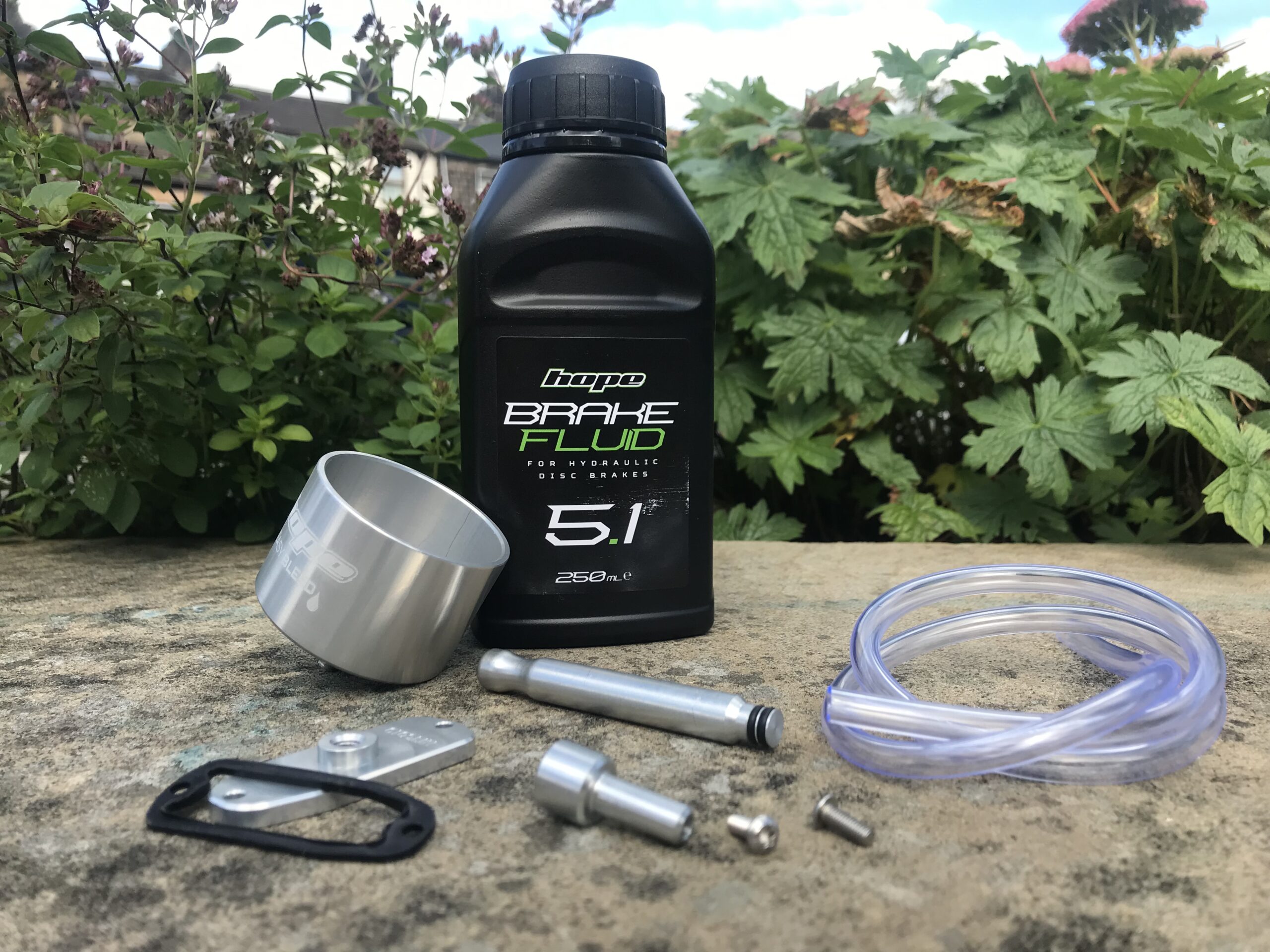 We really liked the Tech 4 E4 brake setup recently. So we got the bigger bruiser Tech 4 V4 setup in for test. And this is the bleed kit for it so we can trim our hoses to the exact length required for maximum neatness points. And in typical Hope fashion, everything that could be made in-house over in Barnoldswick, has been just that. I imagine they even tried machining their own rubber hose.