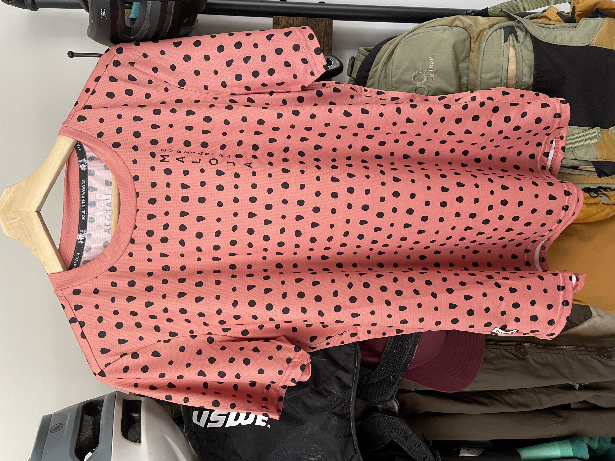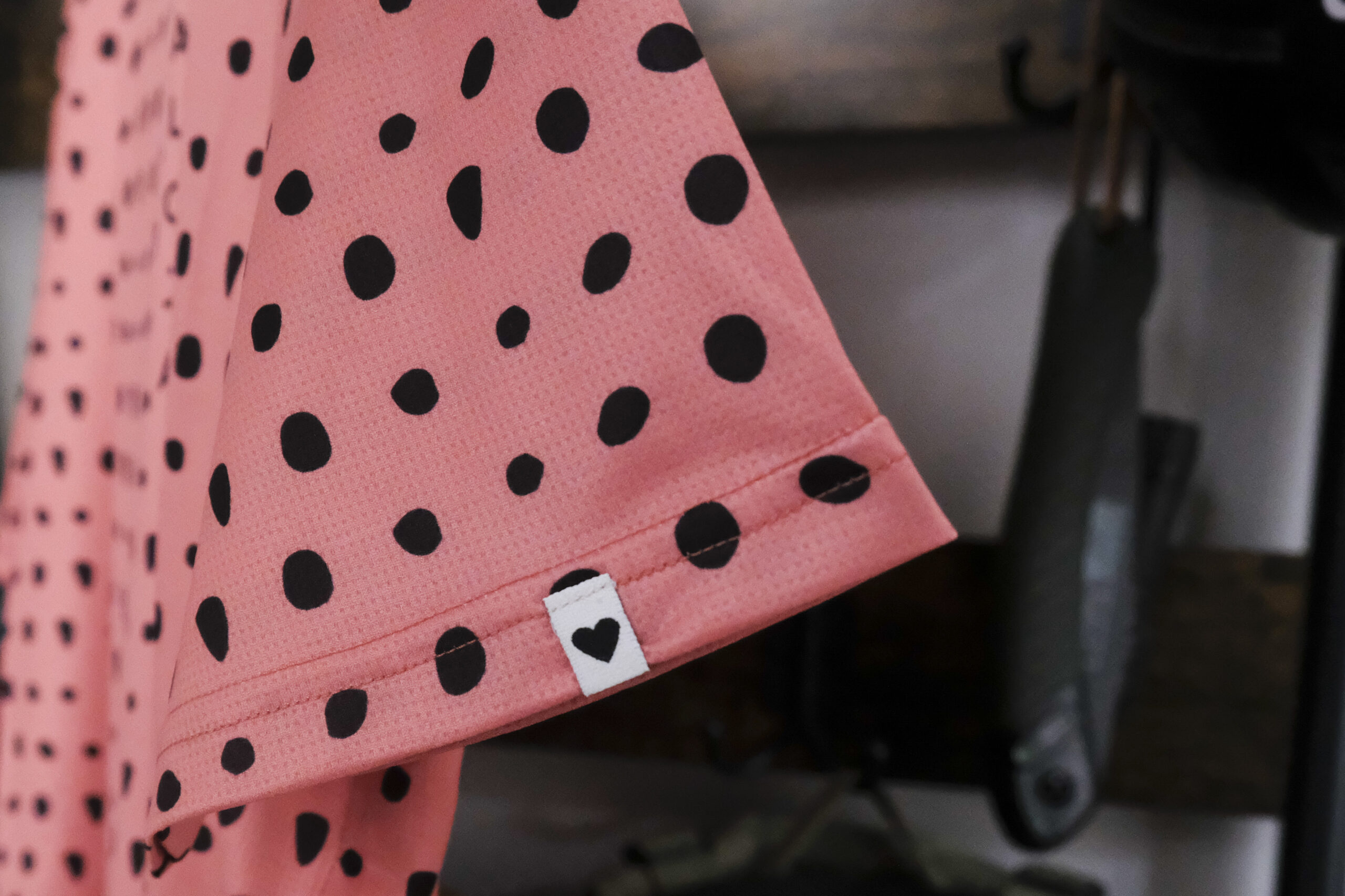 This lightweight, moisture-wicking jersey has a cute smiley face hidden on it! It’s a really nice material, ideal for warm days and when you want to be easily spotted.