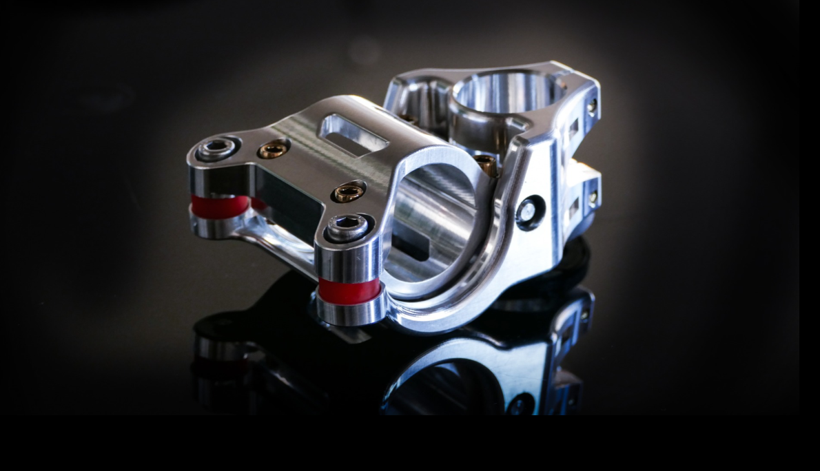 First, the details, it’s made from CNC 7075 aluminium, is 42.5mm long, takes 31.8mm bars, weight 280g (!) and works using elastomers in front of the bar, that pivots just in front of the steerer tube, giving a few mm of flex.