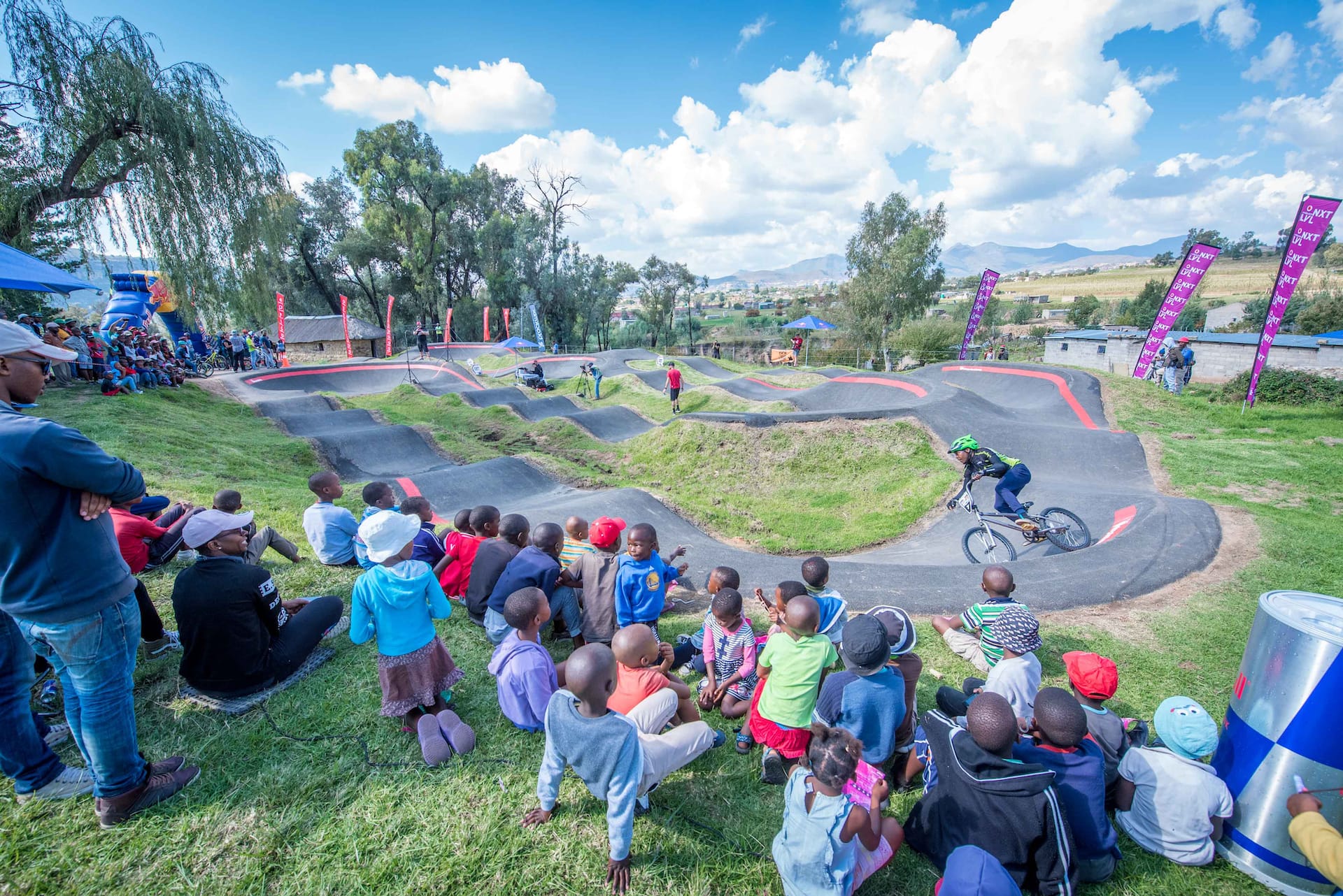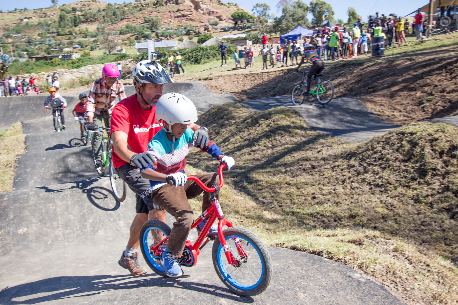 That is still only the tip of the iceberg for the Pump for Peace programme – they have their fingers in a multitude of pies. Before the international team was formed they already supported a female youth development team that consists of mountain bikers from the townships of Durban. Alongside Pump for Peace, Claudio, combined with his team at Velosolutions, is also responsible for creating the UCI Pump Track World Championships. This year’s finals will be hosted in Santiago de Chile in South America. By developing the facilities in these underprivileged communities it unlocks the same opportunity for everyone to qualify for the finals, giving these kids in Uganda, Lesotho, Nepal, Zimbabwe the same chance as anywhere else. “The first year of the qualifying event in Lesotho we had loads of riders coming in from South Africa. We have had local riders Mosito Mohapi and Khothalang Leuta win the qualifier and got the opportunity to travel to Switzerland for the World Championships with the help from the Pump for Peace programme building the track in their village of Roma,” Claudio explains.