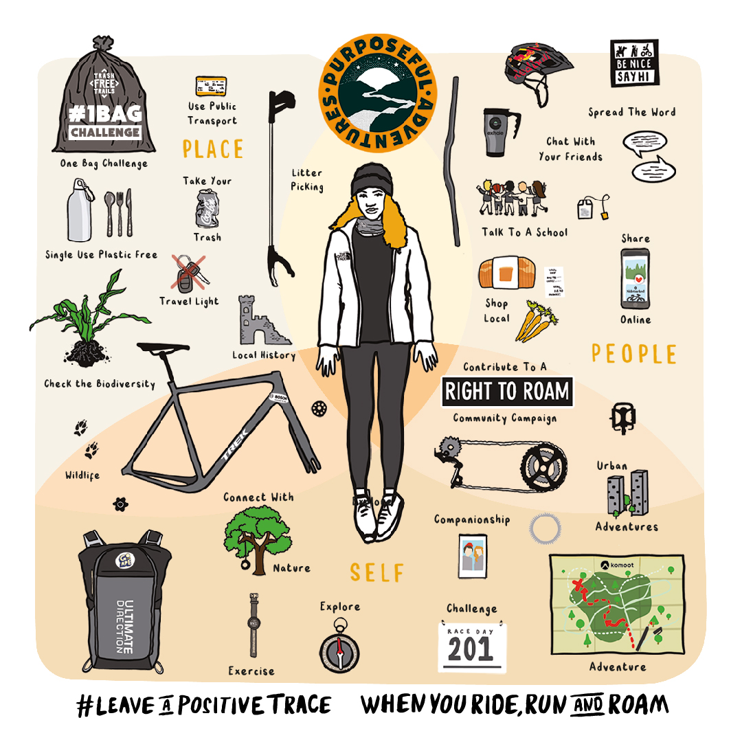 Trash Free Trails doesn’t pretend to be able to know or do it all. So, as part of the campaign, Trash Free Trails will link to other organisations that they might feel aligned to, such as the Right to Roam Campaign and Surfers Against Sewage’ – Speak up for our Rivers campaign. That way, the impact of a Purposeful Adventure could go much further than anything TFT could do alone.