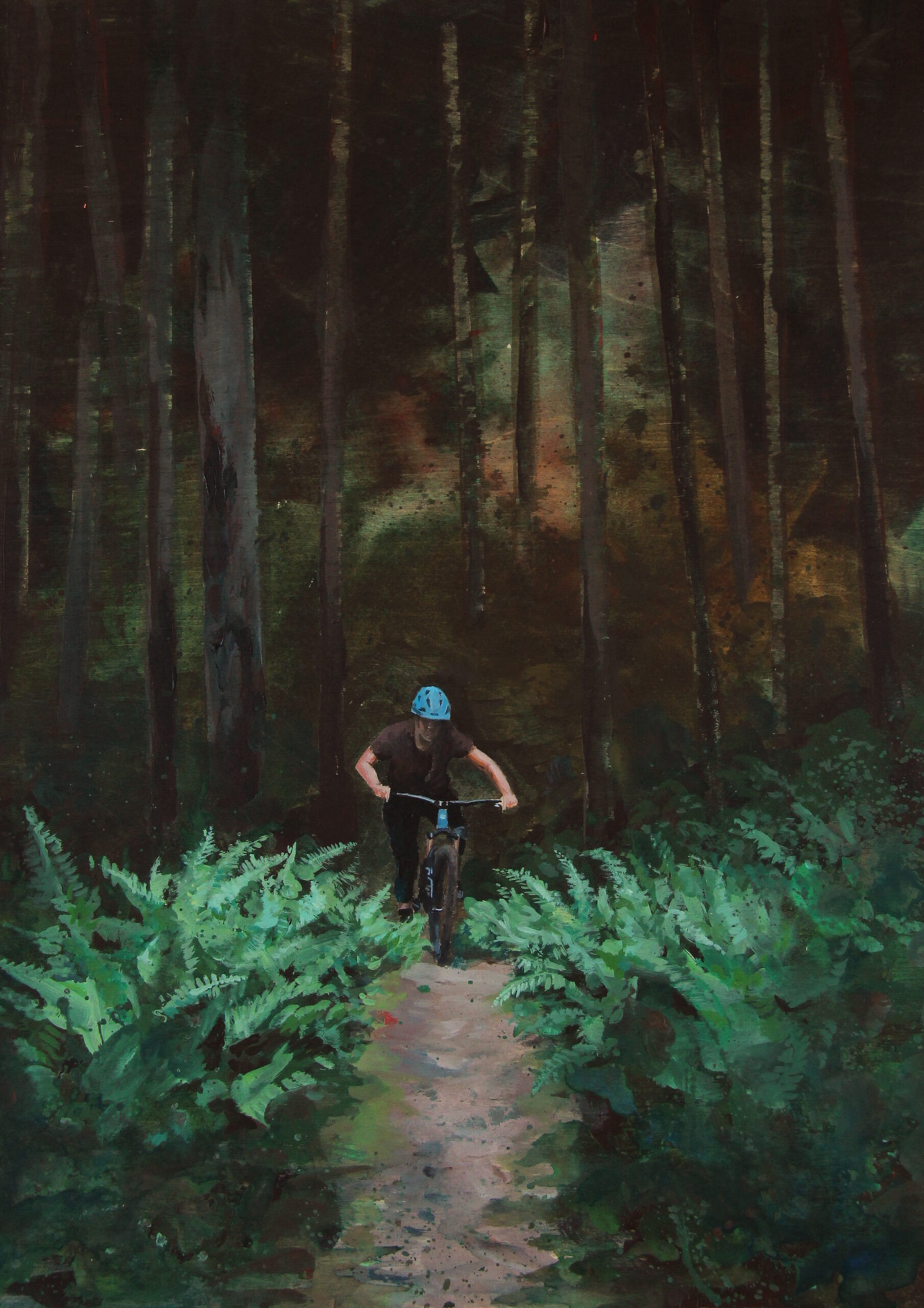 As Katie Lozancich turns her gaze from the path that led her up the hill, she makes out the horizon. Somewhere between the skies a woman and her daughter is about to re-live that moment and witness mountain bike history being made. Processed and shown through the eyes of the kid with the binder under her arm who was told not to go for it.