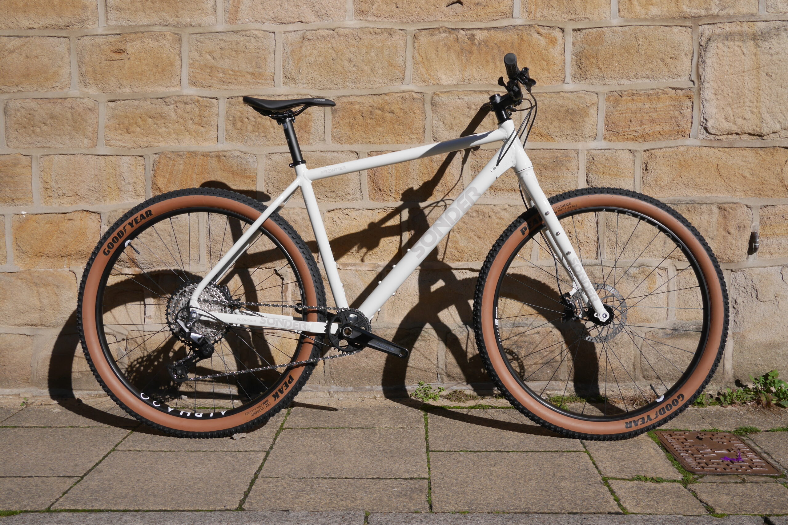 This is also a rad mountain bike. And it is also strangely modern, despite having no bouncy bikes nor carbon nuffink. It has discs. It has suitable reach. The geometry says the head angle is 68° but we’ll see about that (it looks slacker dunnit?) It has 2.4in tyres.