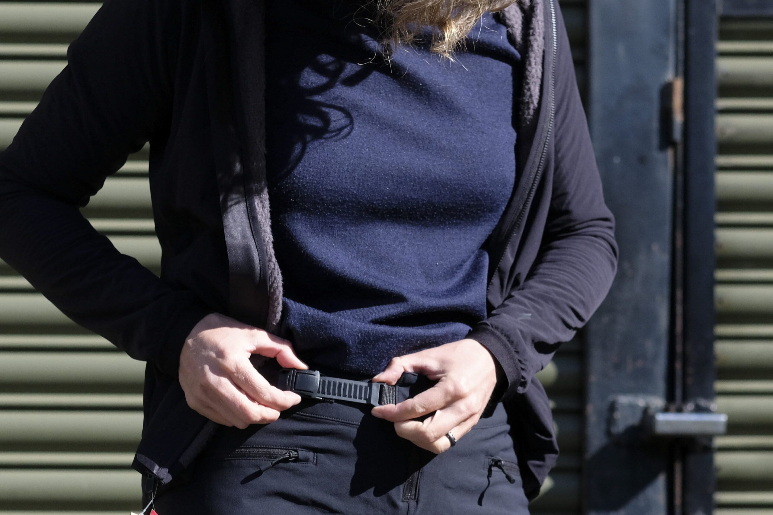 Hannah was amazed to have found some trousers that are long enough – helped by the fact they have super snug and stretchy calves and ankles so they stay down as you pedal – only to discover they are in fact men’s. Which will explain the length, and also the fact she had to squeeze a bit to get them over her hips. But tall women may like to note that Hannah is in a size 32 here, and would be a size 12-14 in women’s bottoms. Ratchet strap waist, pockets galore, and VaporRize fabric designed to stop you getting sweaty.