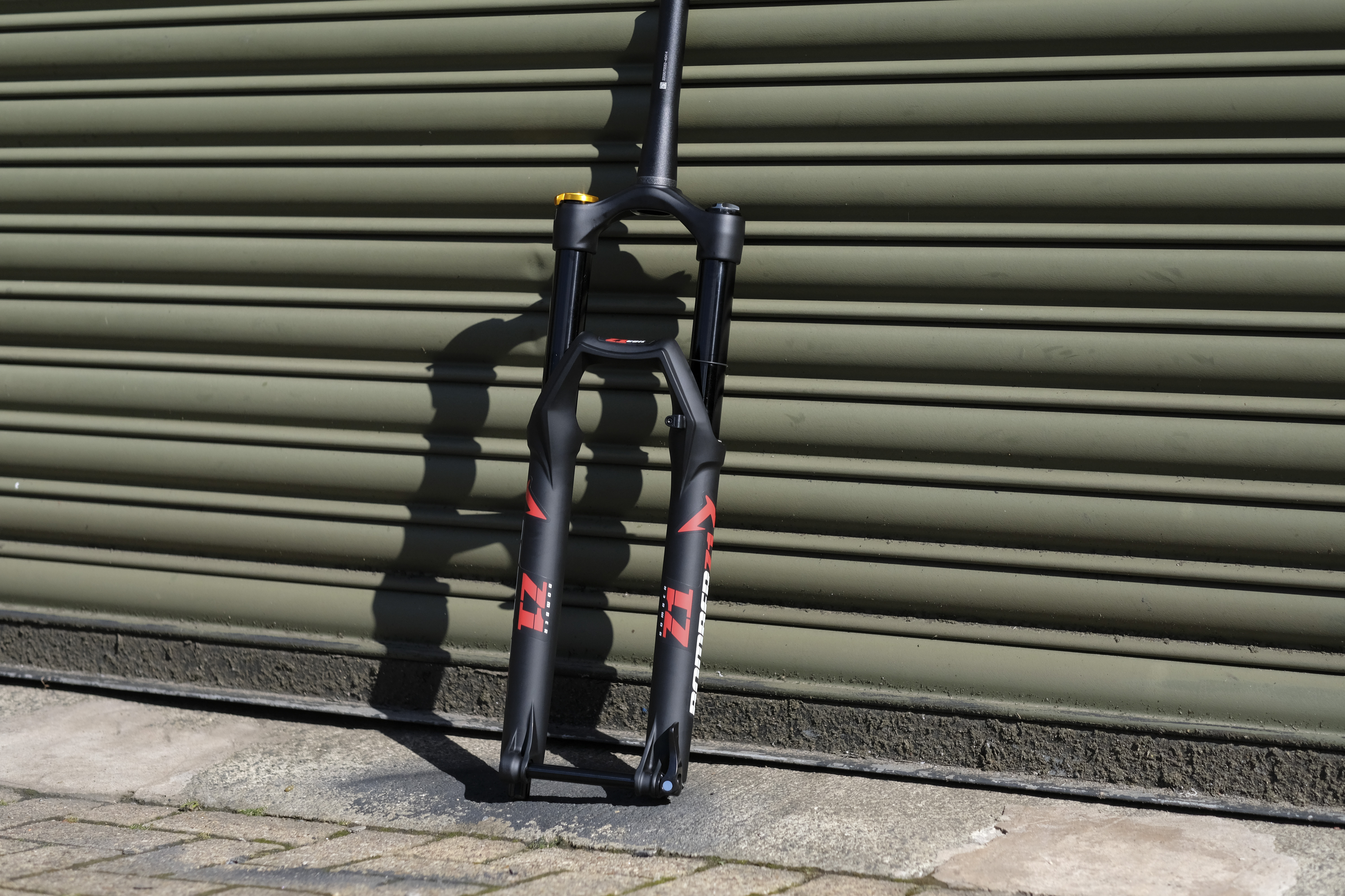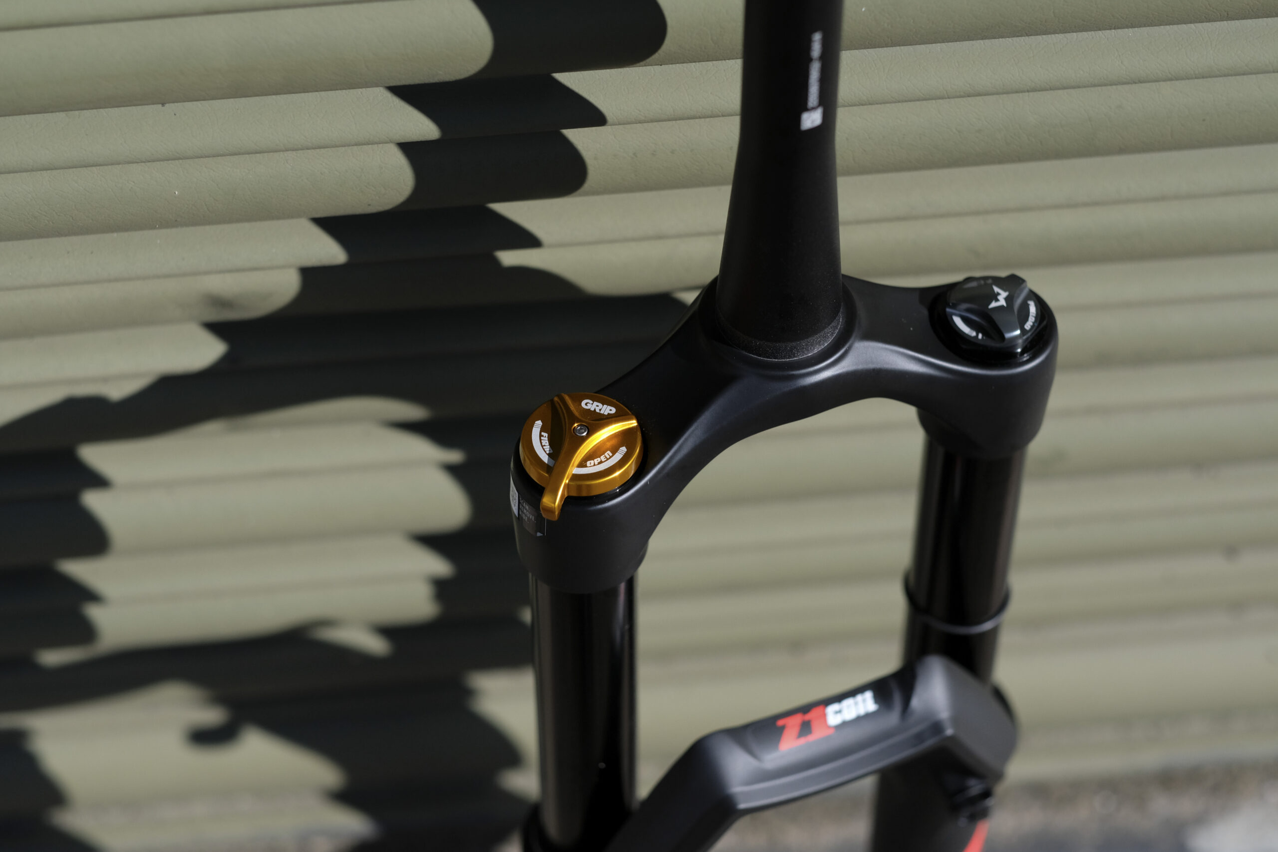 Benji is all about the bounce. Specifically, coil sprung bounce. He’s got a set of 140mm travel MRP Ribbon Coil forks on a bike at the moment. And he’s just finished off the next issue’s coil rear shock test. Safe to say, he’s sold on the coil. With that in mind, he’s got a set of 160mm coil forks from Marzocchi. Yep, the Bomber Z1. Grip damper adjusted via sweep dial on top of leg. Light(er)weight tempered silicon-chromium steel spring (available in 4 spring rates, this has a Medium). ‘Noise management system. External preload adjuster to dial in sag and off the top feel/firmness. Travel can easily be changed in 10mm increments via included reconfigurable internal spacers.