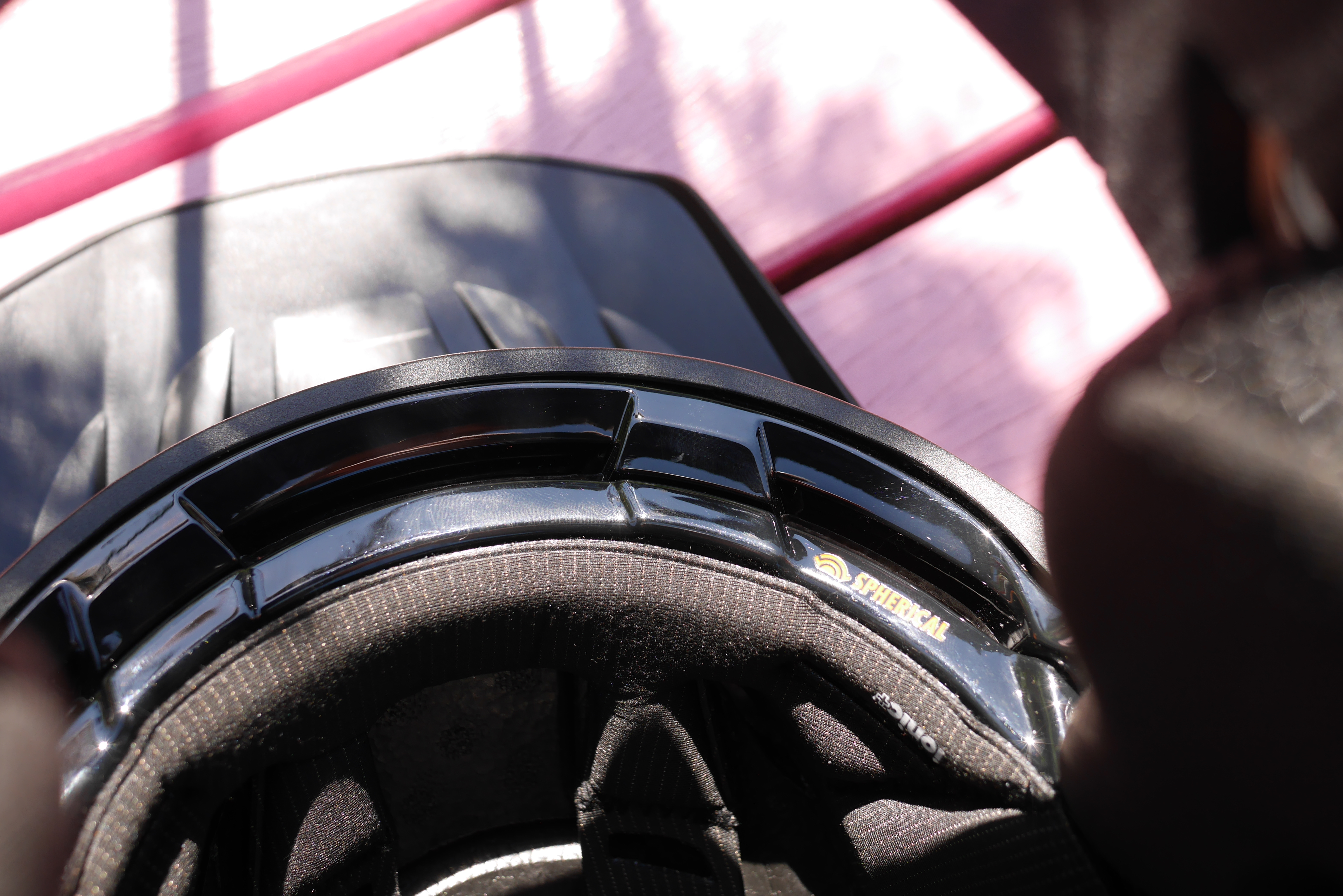 The main feature of this helmet is the ‘Spherical’ lid-in-lid design. This system essentially means the helmet is made up of two inner shells in a ball-and-socket arrangement that allows for independent movement of these two pieces and the use of two different materials in each shell.