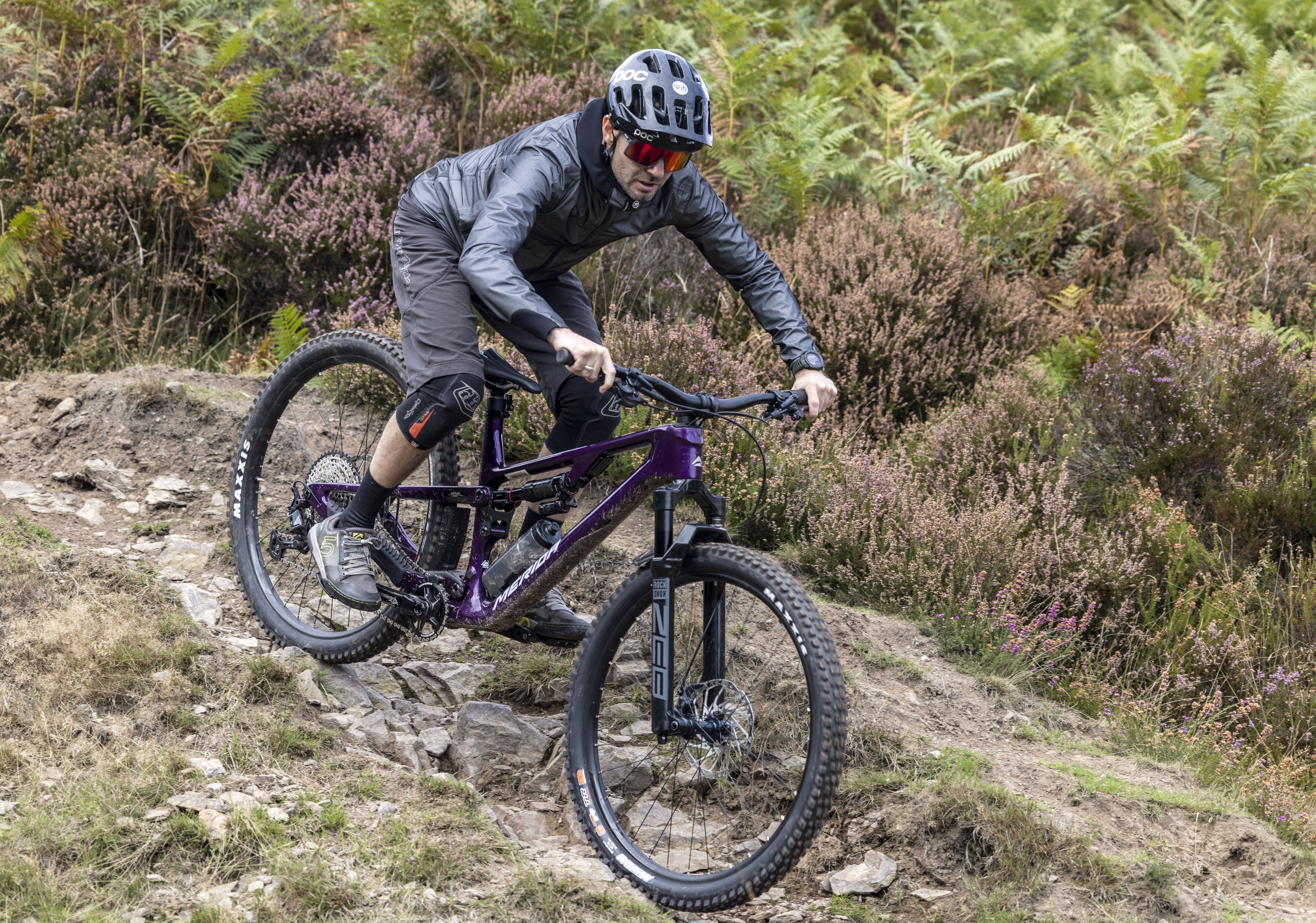 The range has three carbon and two aluminium frame build options with pricing between £9,000 for the flagship bike and the entry point bike is the ONE-SIXTY 600 at £2750. The top two builds; 10K and 8000 boast the SRAM wireless AXS systems, whilst the spec tested here is the 6000 (entry level carbon frame) with old fashioned cable gears. £4600 will land you the same carbon frame with all the same features (more on these in a minute) as its more expensive siblings, some RockShox suspension; up forward you’ll be treated to a Zeb Select fork that’s been paired with a Super Deluxe Select+ rear shock for the dance. Shimano is employed for both stopping and going duties, with 12 speed SLX drivetrain, an XT shifter and RaceFace Turbine cranks.