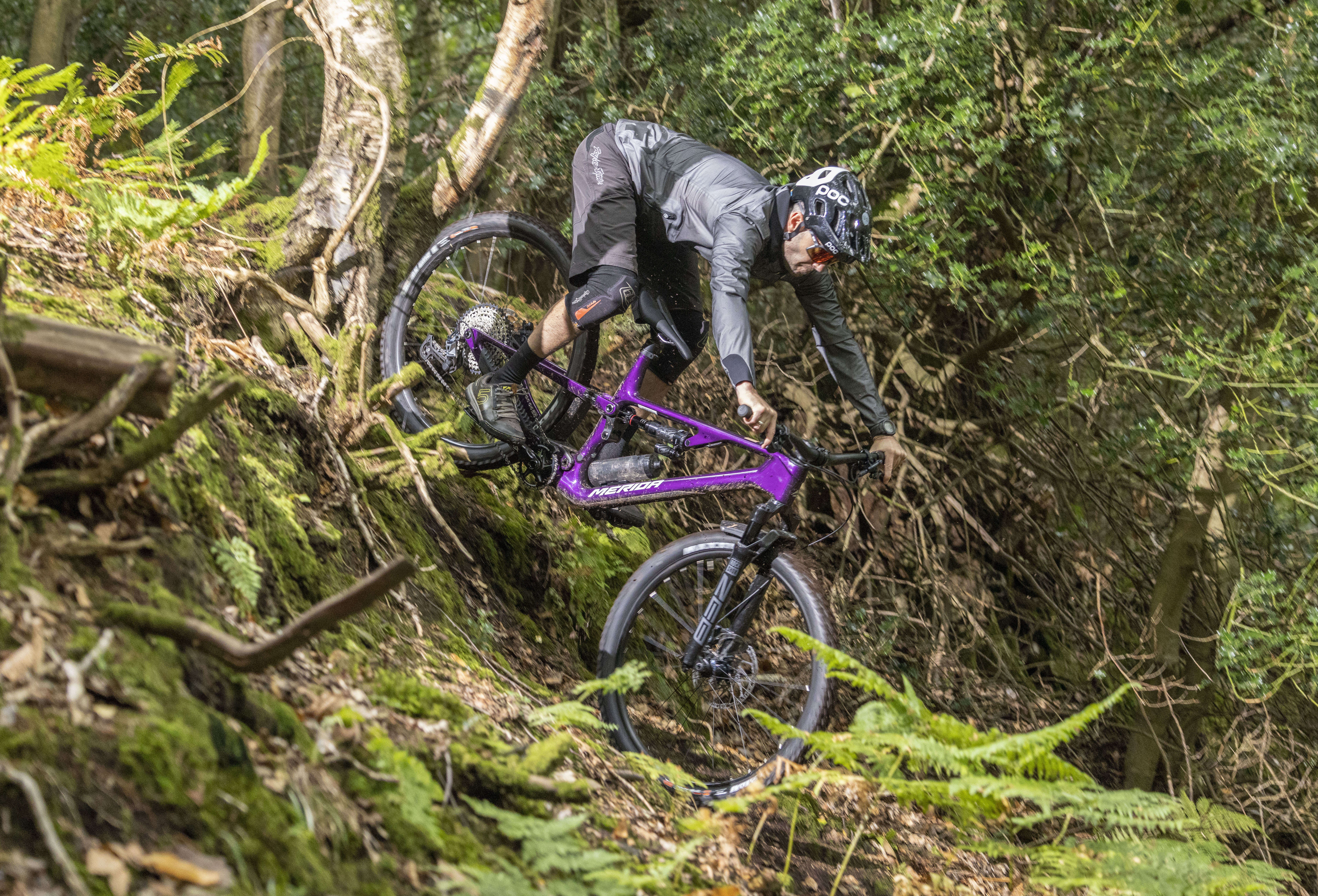 The gargantuan 498mm reach on the size “Long” was paired for my 5ft 11 frame and denotes the bike’s plough-ability. More than ample space to let the bike fly when you need it to and offers an abundance of stability when the bike eggs you on to reach terminal velocity. Interestingly the bike seemed to defy this measurement, surprisingly I didn’t feel overly stretched out or too racy even which paid dividends in the steeper sections allowing me room to move without leaving the front end too unweighted part in thanks to the low stack height (625mm). A low stack height is a good call, allowing consumers to increase the bar rise and the number of stem spacers to gain the desired height. After all, you can’t remove the stack height if the headtube is too long. Good work Merida.