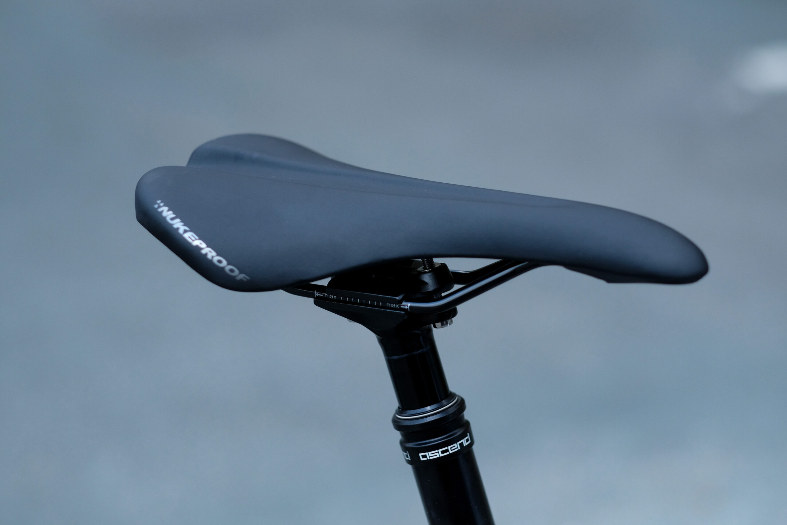 Build kit. There’s not a whole lot wrong here. It is all perfectly serviceable stuff that’s capable. The tyres are good. The grips are great. The dropper is fab. The drivetrain was so good I can’t say I even thought about it once. I’d prefer to see a slightly shorter stem (35mm) on there personally. And I do think that 25mm rise handlebars aren’t lofty enough for a size XL bike.