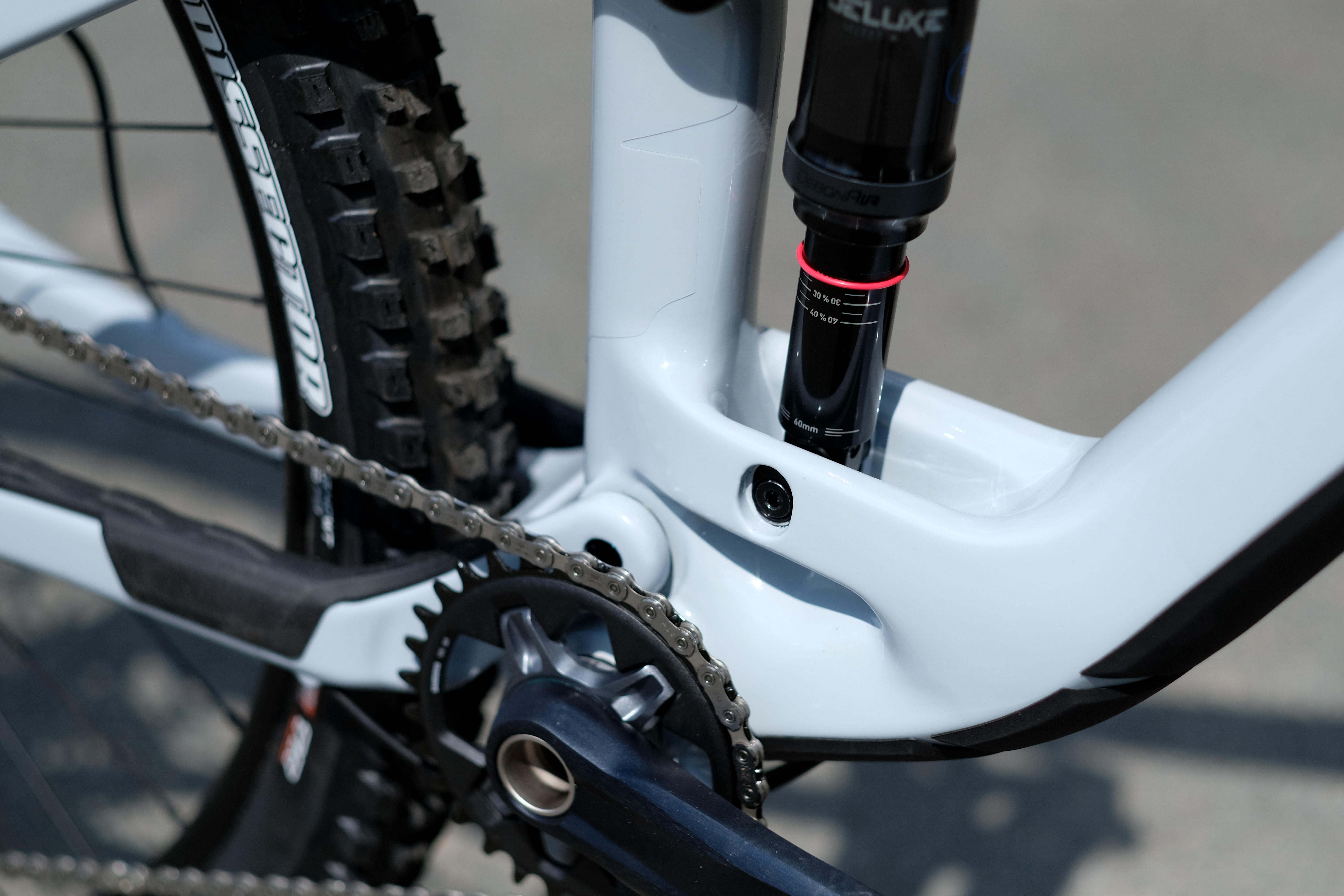 The RockShox Deluxe Select+ RT is a decent performer. If you’re used to having a bit of low speed compression (LSC) adjustment on a bike, you do miss it here, but if you’ve never had LSC, ignorance is bliss. It is possible to reduce the amount of pitch and wallow by increasing the rebound but that has the effect of de-funning the feel of the bike too.
