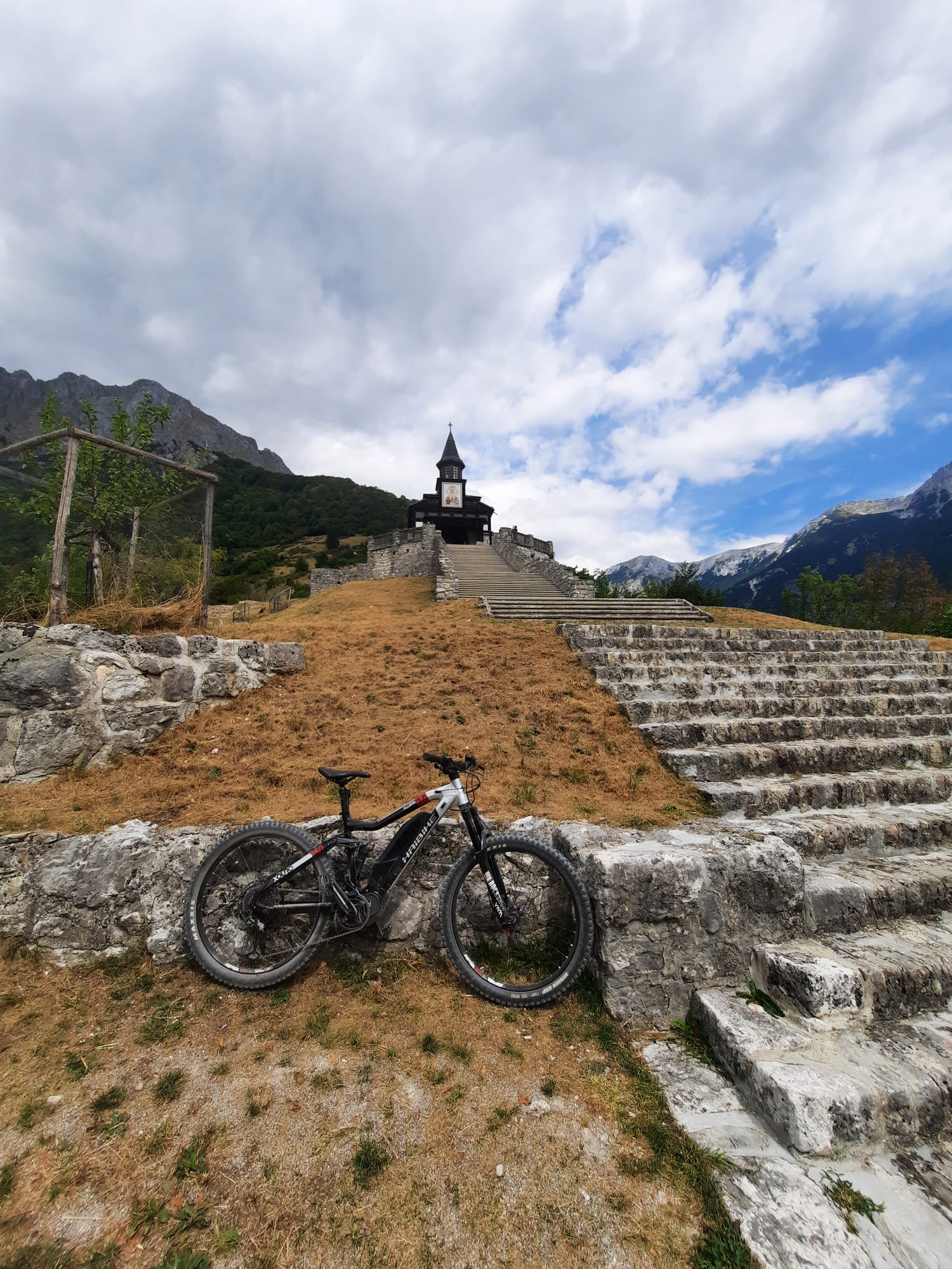 After probably half a mile and a couple more switchbacks I approached an amazing looking little church on the mountain built in the early 20th century by Austrian Soldiers, so I stopped here and ate the remains of my packed lunch, and almost drank the last of my water. With this and the rapidly depleting battery of my steed I decided that further exploration might not be the best idea and it was about time to head back into town. The descent back was mostly on the road that the minibus takes to take people up to the church, which judging by the lack of safety barriers and the sheer drop off to the side is enough, I’m sure, to convince just about anyone they need church! Unless, that is, you’re on a bike, in which case it’s a super fun doubletrack with bermed corners and the odd jump built into the walls on one side. Just be sure to watch out for minibuses coming up the other way!