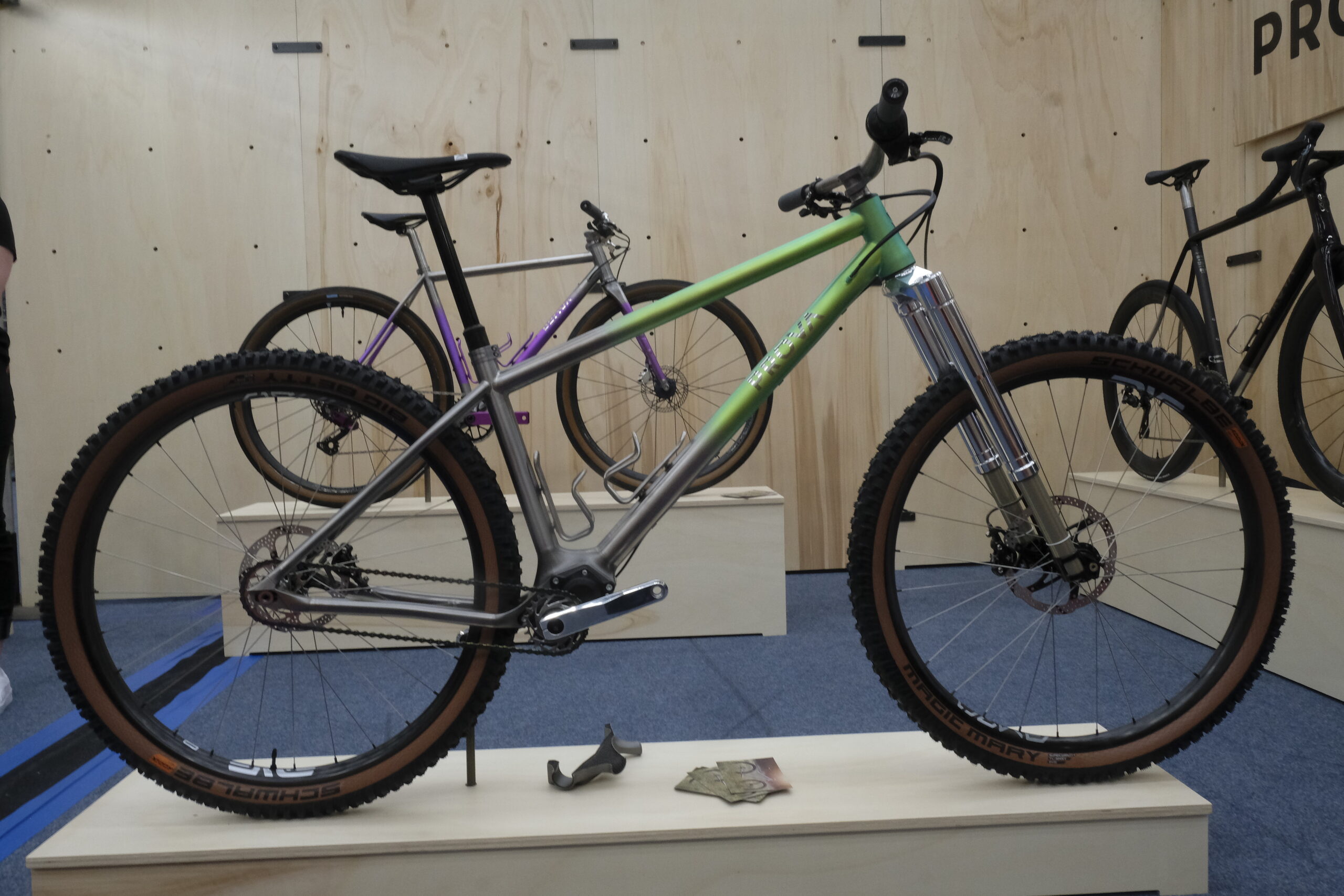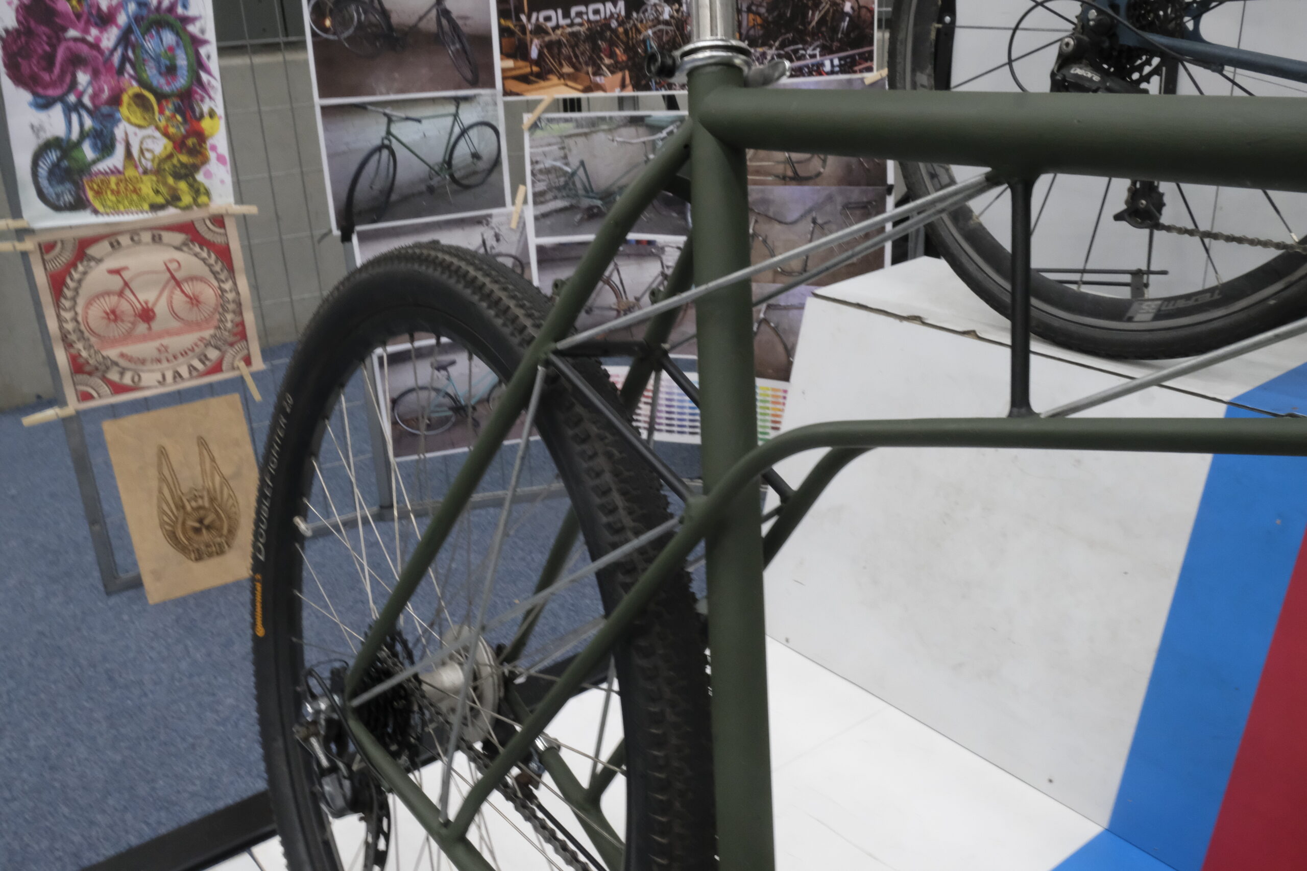 Bespoked is a hand made bicycle show, so there are bikes of all sorts there. There are bikes there that I can easily eliminate from the ‘Best Mountain Bike’ candidates. Track bikes, road bikes, Ted James’ gorgeous titanium BMX. All are Not Mountain Bikes. I also eliminated anything with drop bars, regardless of tyre size – there was a separate ‘Off Road Bike’ award category, so I figured all the gravel bikes and monster crossers could go in there (which was a relief, because there were a lot of them at the show).